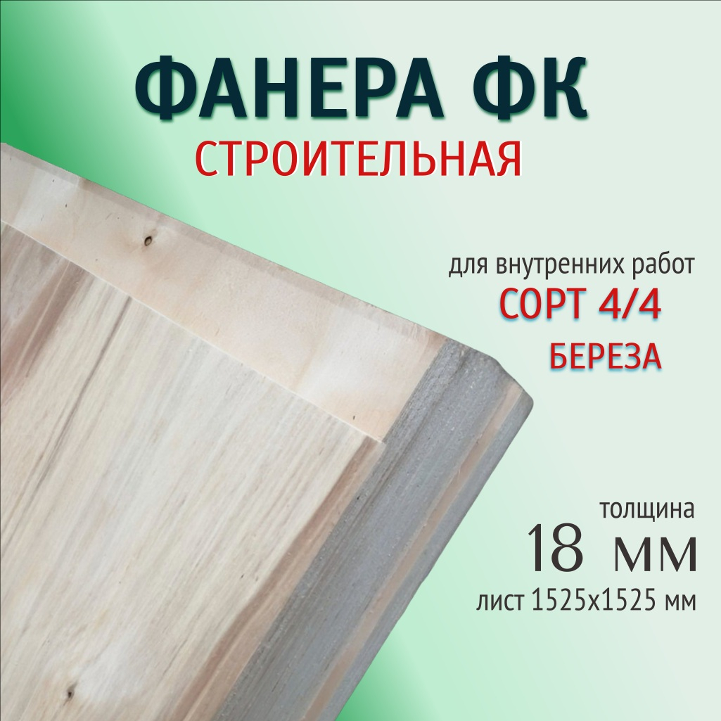 Фанера строительная ФК, сорт 4/4, береза 18х1525x1525 мм, для внутренних работ является надежным и универсальным материалом для строительных и ремонтных работ. Эта березовая фанера соответствует стандартам ГОСТ 3916.1-96 и классифицируется как влагостойкая, что делает ее подходящей для использования внутри помещений.