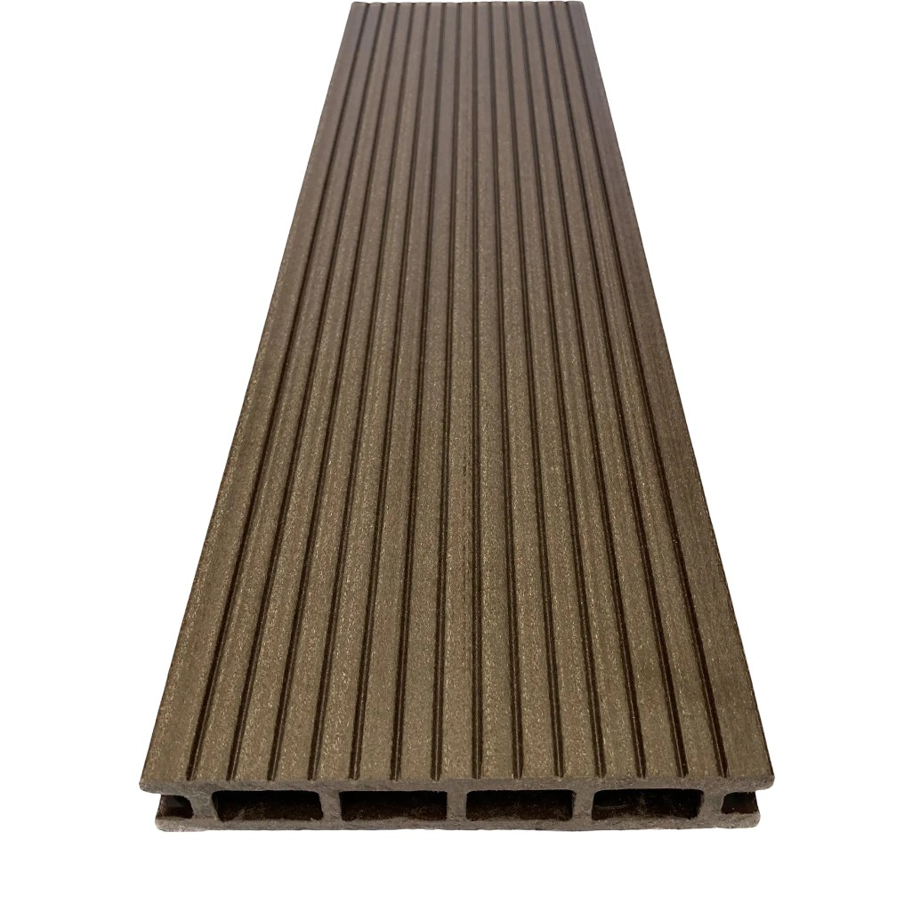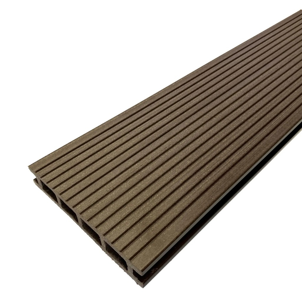Террасная доска MasterDeck ДПК 24х140х6000 мм, поверхность Вельвет, Венге предназначена для создания напольного уличного покрытия: настила полов на террасах, строительства причалов для яхт и катеров, укладки вокруг бассейнов и домов, строительстве беседок. Доска для террасы MasterDeck изготовлена из древесно-полимерного композита, который сочетает в себе лучшие свойства древесины и пластика. Она не только эстетична и приятна на ощупь, но и устойчива к воздействию солнечных лучей. Благодаря этому она не требует особого ухода на протяжении всего срока службы, который составляет более 10 лет. Террасную доску можно использовать не только в частных домах, но и в коммерческих целях, например, в кафе, ресторанах, отелях и базах отдыха с высокой проходимостью. Секрет долговечности и неприхотливости доски MasterDeck — в использовании высококачественных материалов. В её состав входят первичный (не переработанный) полиэтилен высокой плотности, древесная мука лиственных пород и другие компоненты, которые были тщательно подобраны. Благодаря этому доска устойчива к различным воздействиям и прослужит долго.