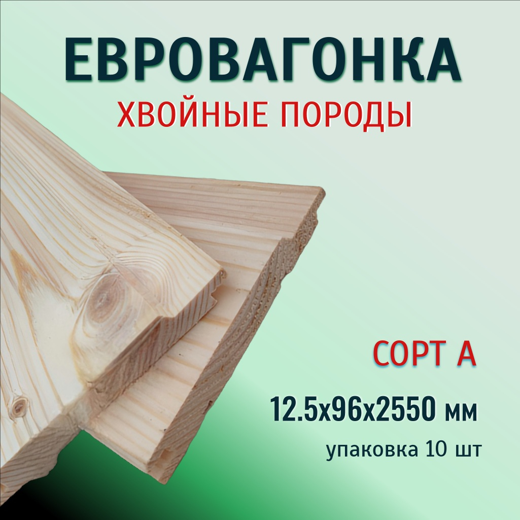 Евровагонка, сорт А, Хвоя, Архангельск 12.5х96х2550 мм, в упаковке 10 штук