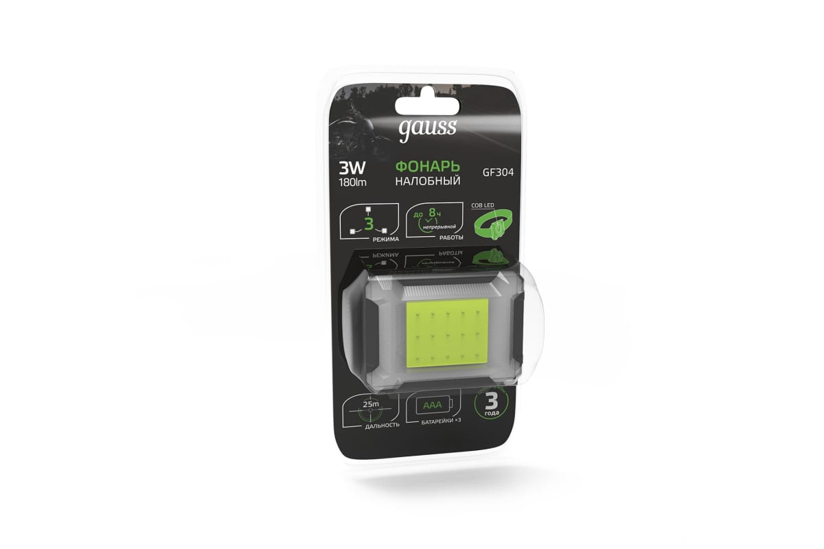 - Фонарь налобный Gauss GFL304 3W 3xAAА