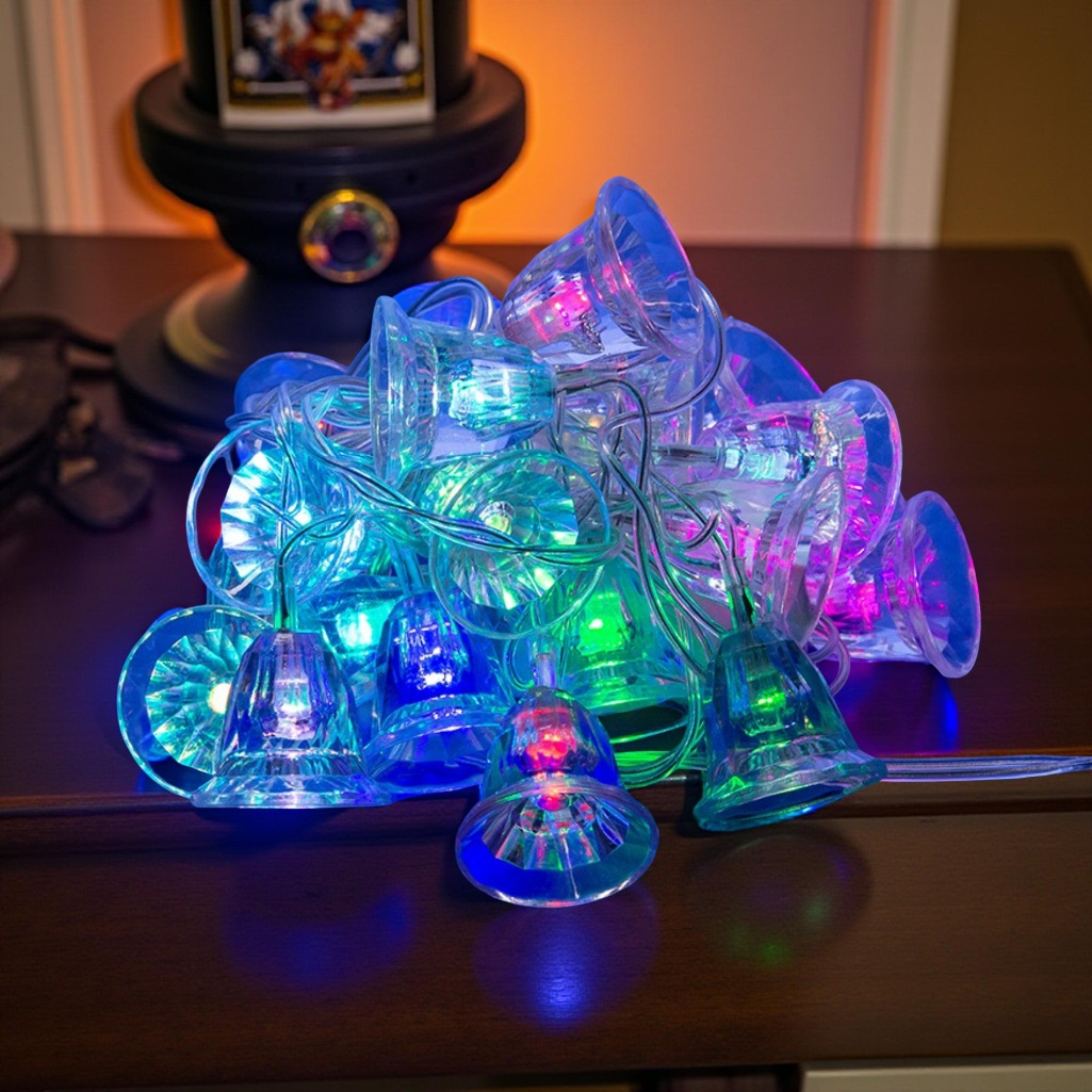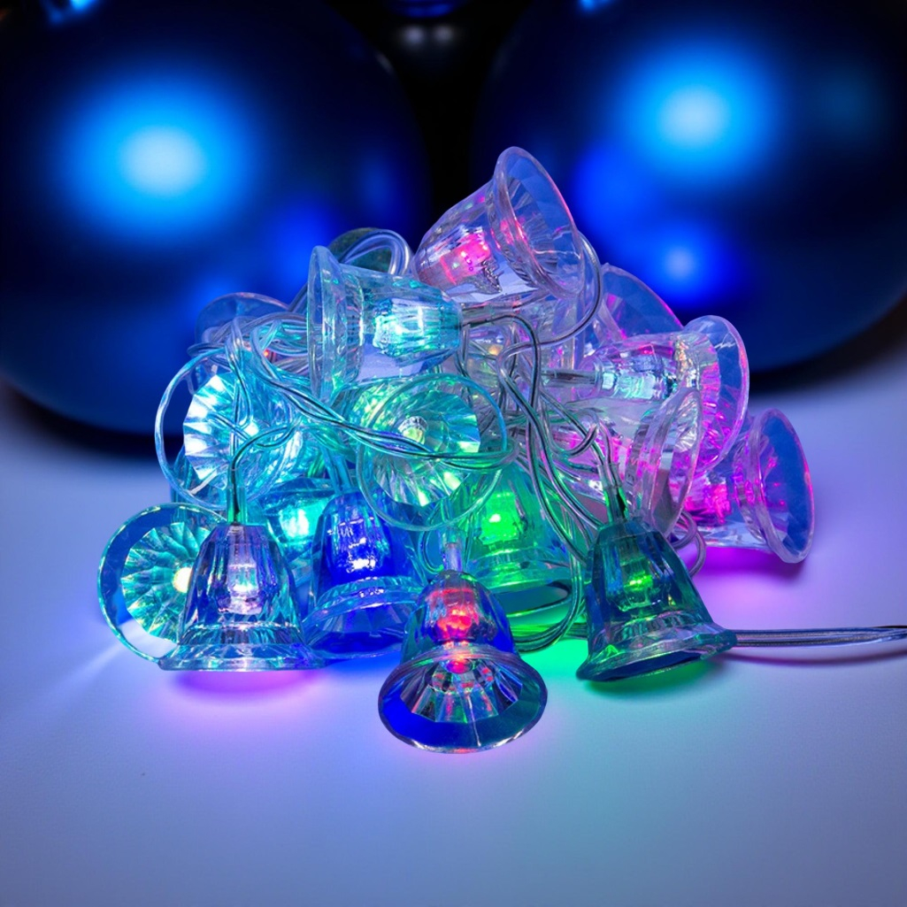 Гирлянда светодиодная Uniel ULD-S0280-020/DTA RGB IP20 BELLS, Колокольчики, Разноцветная, 07919, 2.8 м идеально подходит для создания праздничной атмосферы не только в жилых помещениях, но и в коммерческих объектах, таких как торговые центры и кафе. Это универсальное решение для украшения как интерьеров, так и экстерьеров. Гирлянда состоит из 20 светодиодов и имеет длину 2,8 метра. Гирлянда выполнена из пластика с использование ПВХ для изоляции кабеля. Прозрачный провод делает её визуально привлекательной и гармонично вписывающейся в любой интерьер. Контроллер ULD-S0280-020/DTA RGB позволяет легко настроить цветовую палитру, добавляя разнообразие и яркость в оформление. Степень защиты IP20 подразумевает использование гирлянды внутри помещения. Длина сетевого кабеля составляет 70 см. Гирлянда предлагает 8 различных режимов освещения: волнообразный, последовательный, перетекающий, бегущая вспышка, затухающий, мерцающий, постоянный и комбинированный. Эти режимы сменяют друг друга по очереди. Для управления режимами используется контроллер, который идёт в комплекте.