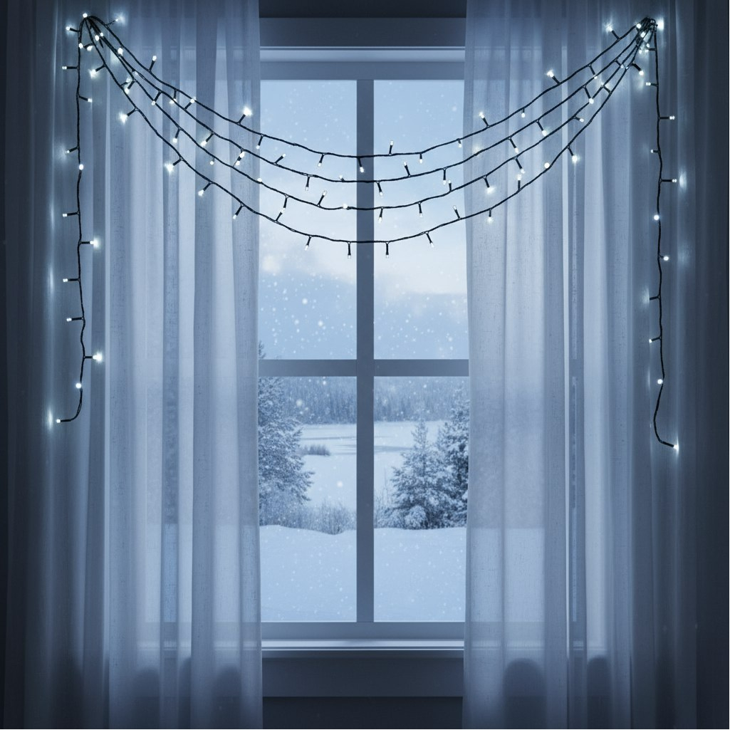 Гирлянда Uniel легко устанавливается на любых поверхностях, включая стекло, бетон, кирпич и древесину. Срок службы светодиодов составляет десятки тысяч часов, что гарантирует долговременную эксплуатацию без необходимости замены. Светлые тона зеленого провода и белых огоньков создают целостную и законченную композицию, представляющую художественный интерес. Гирлянда рименяется в дизайне городского пространства, создавая живописные образы и эстетические ощущения. Количество светодиодов обеспечивает глубокое и равномерное освещение, очерчивая контуры объектов и подчеркивая их красоту. Изделие украсит фасады зданий, набережные, парки и торговые центры, придавая им неповторимый шарм.