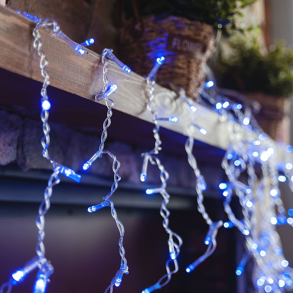 Гирлянда светодиодная Uniel ULD-B3010-200-DTA BLUE 07950, IP20, бахрома, Синий свет 07950, 3 м предназначена для декорирования интерьера в помещении. Гирлянда выполнена в виде горизонтального провода, с которого свисают короткие нити с лампочками. Гирлянда имеет 32 подвеса, расположенных на расстоянии 9 см между каждым. Длина подвесов 40 и 70 см. Всего 200 светодиодов. Изделие можно разместить над дверным или оконным проемом, растянуть на стене или под потолком, можно украсить предметы интерьера. 8 режимов свечения сменяют друг друга поочередно: волнообразный, последовательный, перетекающий, бегущая вспышка, затухающий, мерцающий, постоянный и комбинированный. Степень защиты IP20 указывает на необходимость использования данной гирлянды только внутри помещений, без воздействия влаги. Срок службы предполагает 50000 часов. Изделие упаковано в картонную коробку.