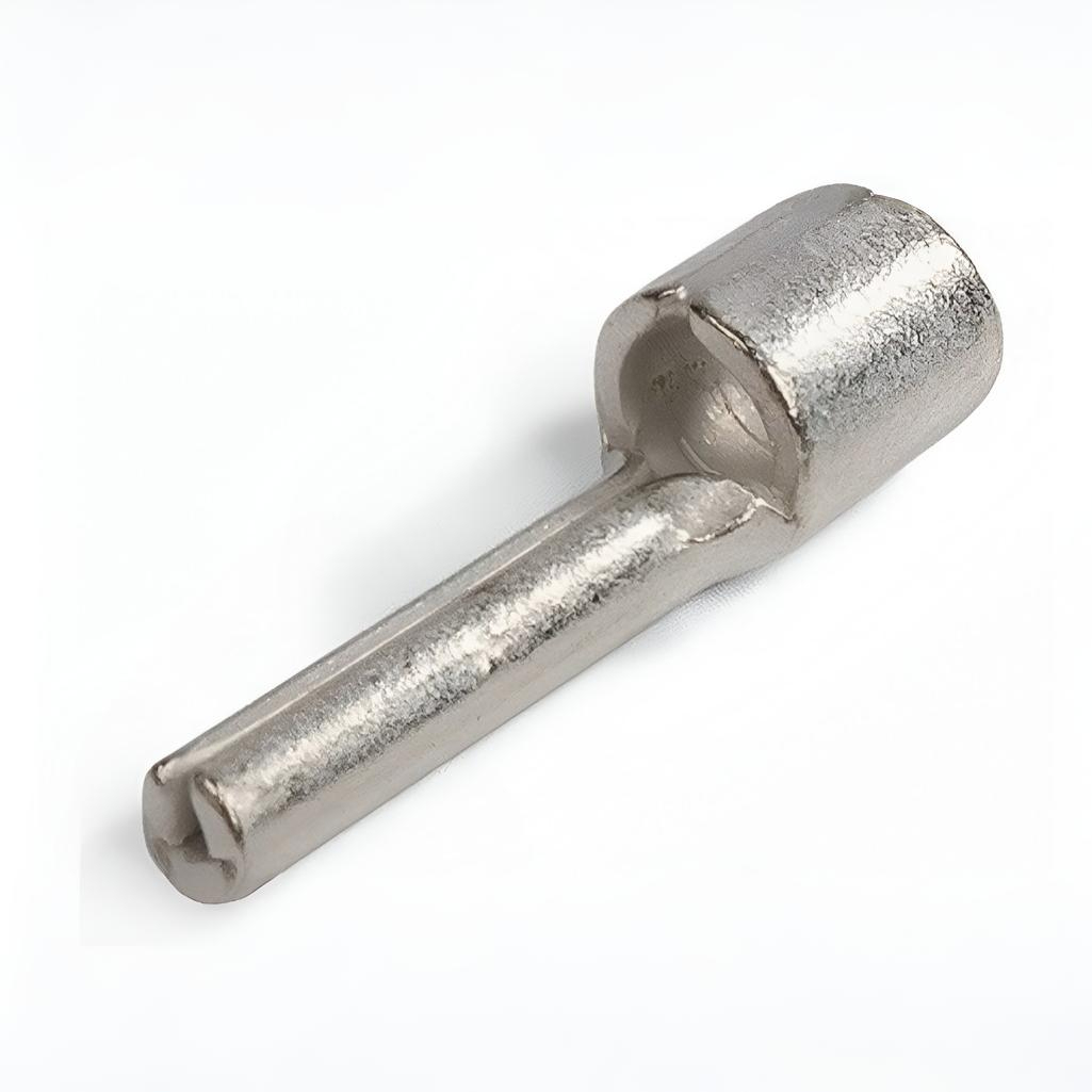 Наконечник штыревой КВТ НШП-50 кв.мм — мощный штыревой наконечник для оконцевания силовых медных кабелей сечением 50 мм² методом опрессовки. Конструкция с плоским контактом предназначена для подключения к винтовым клеммам электрооборудования.