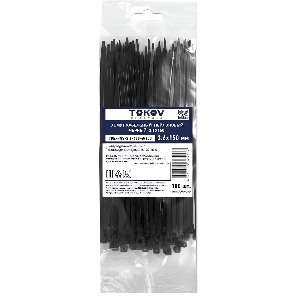 Стяжка кабельная Tokov Electric TKE-HNS-3.6-150-B/100, 3.6х150 мм, упаковка 100 шт, черный