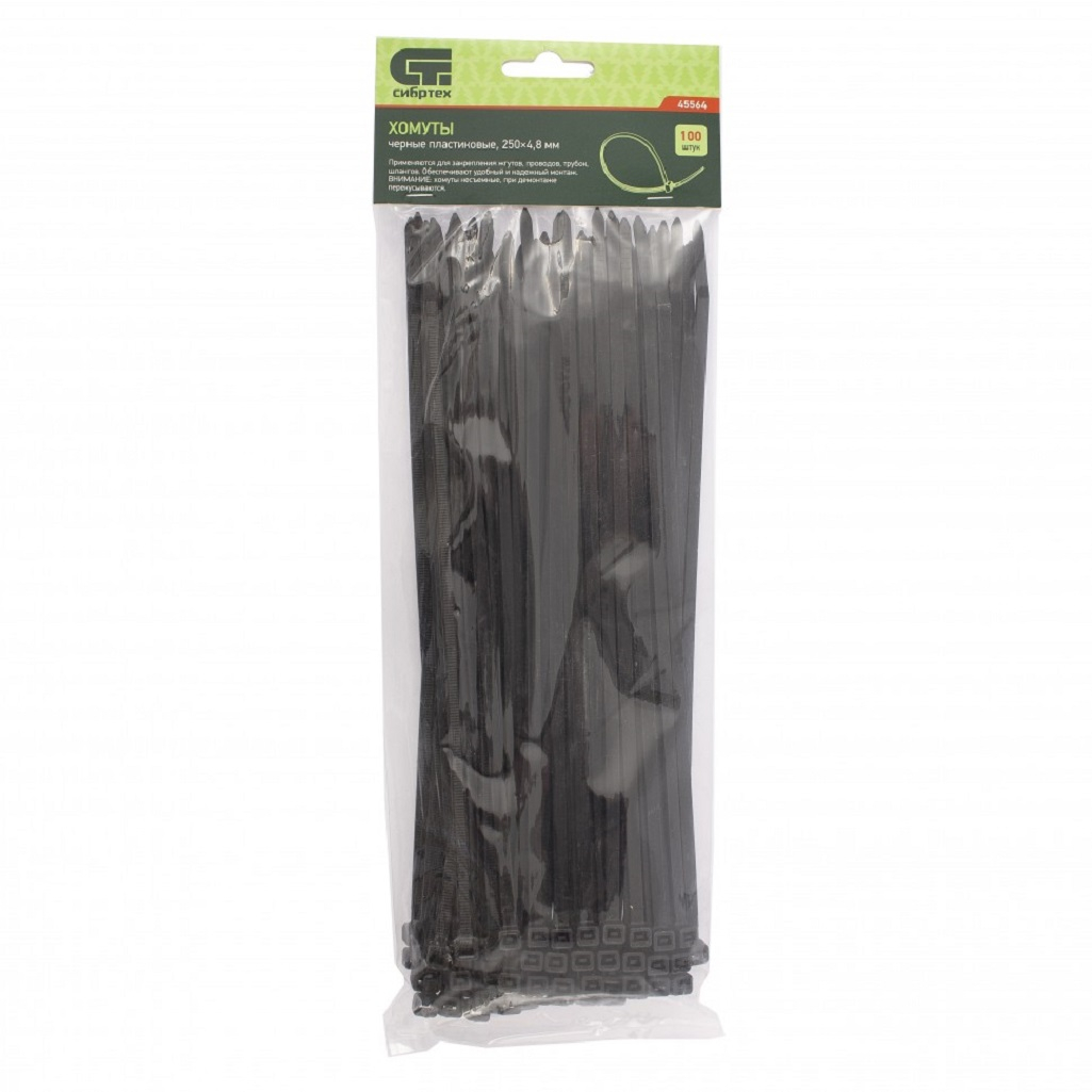 Стяжка кабельная Сибртех 45564 пластик 4.8х250 мм, упаковка 100 шт, черный