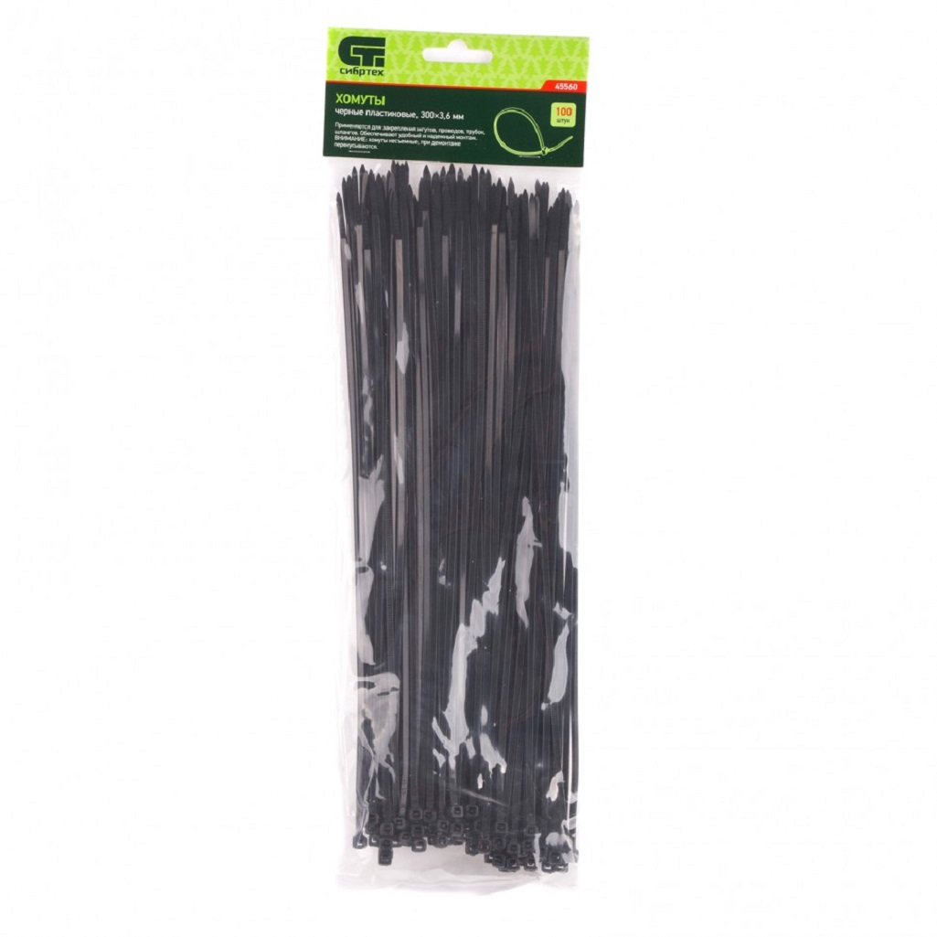 - Хомуты СИБРТЕХ пластиковые чёрные 3,6*300мм 100шт/уп
