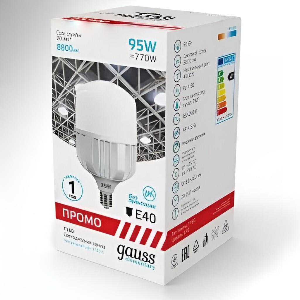 Описание лампы Gauss Elementary 60420 Promo T160, 95 Вт, Е40, 8800 lm, 4100K нейтральный свет