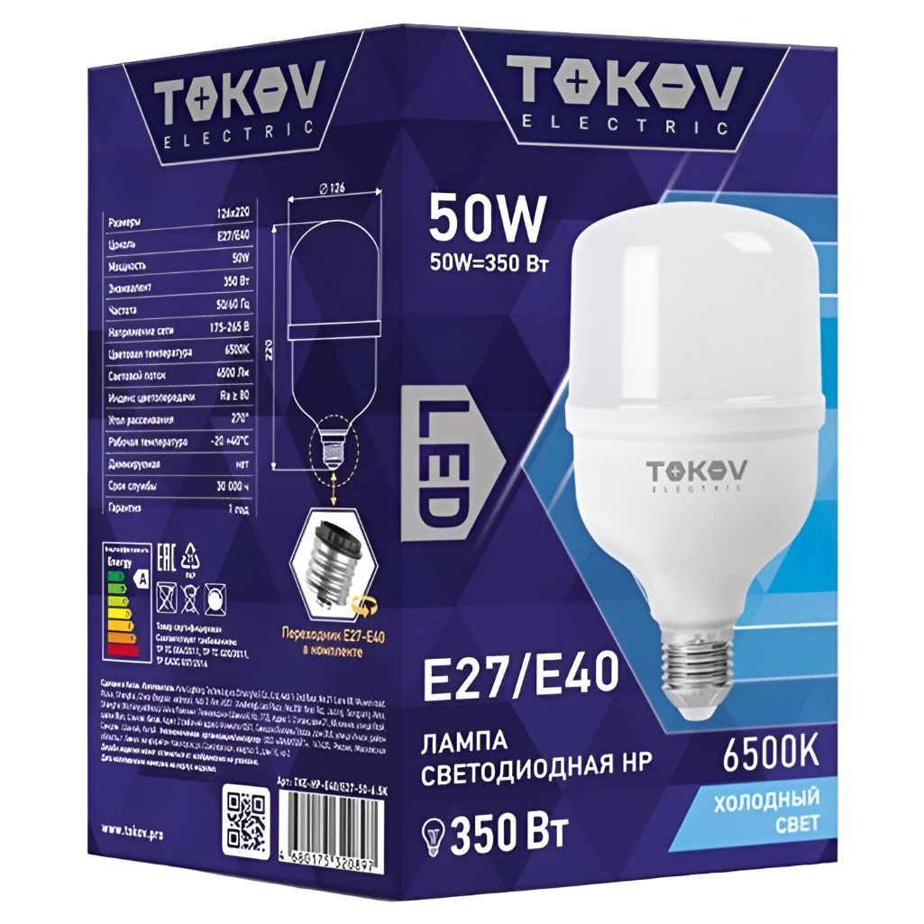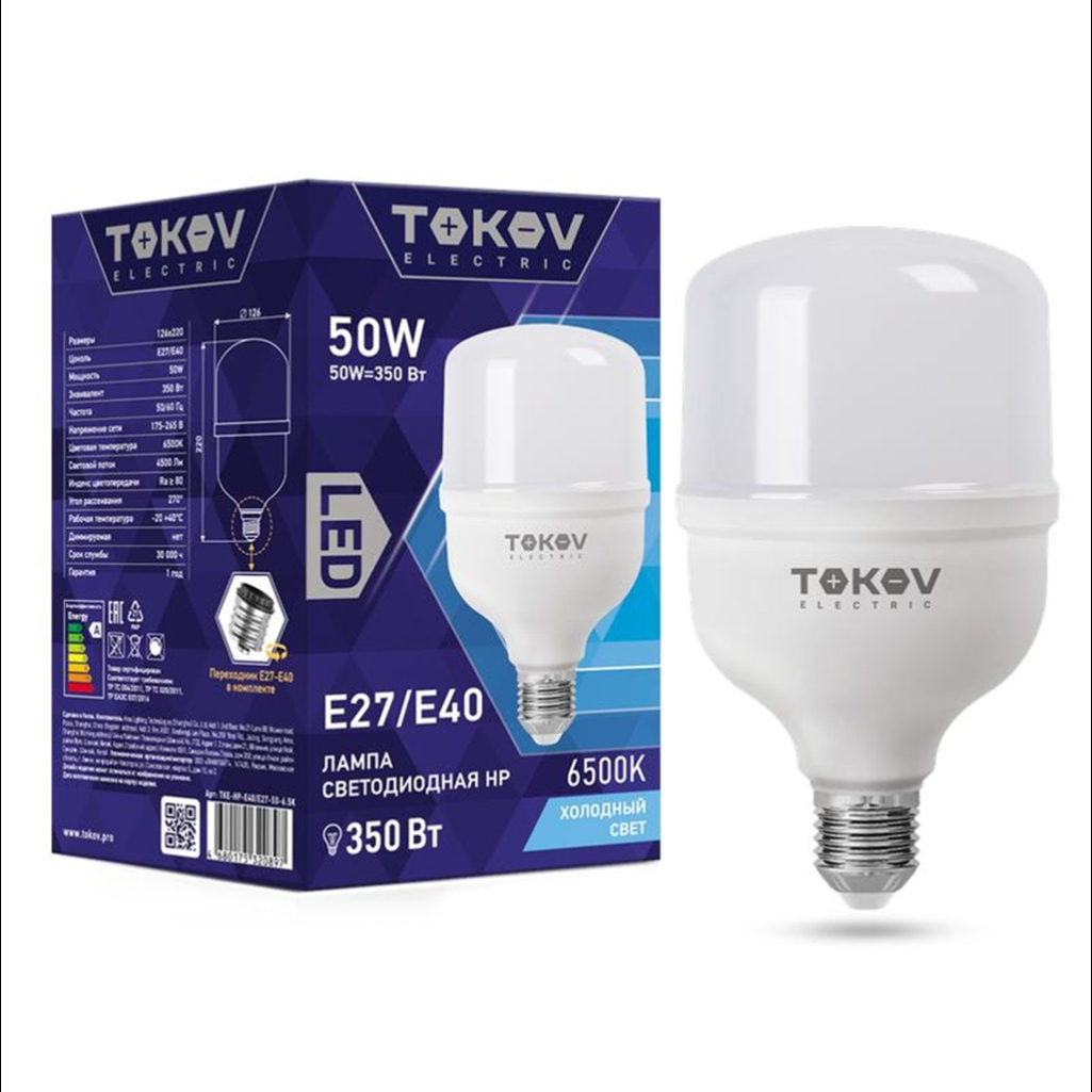 Лампа светодиодная TOKOV ELECTRIC TKE-HP-E40/E27-50-6.5K 1660436, 50 Вт, HP, Е40/Е27, 6500К холодный свет