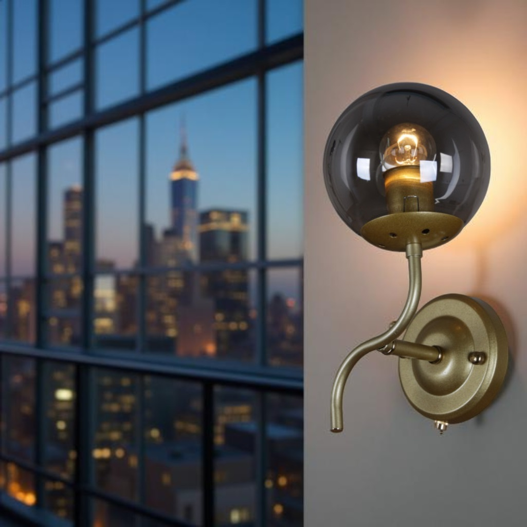 Бра Reluce 36363-0.2-01 5038GD светильник настенный, 60 Вт, Е27, металл, стекло, темное золото предназначен для освещения площади до 3 кв.м. Этот светильник, созданный в футуристическом стиле, безусловно, придется по вкусу любителям всего оригинального. Светильник являет собой сочетание современности и утонченности, что проявляется в мощном основании, выполненном из металла цвета темное золото и стеклянных дымчатых плафонах. Созвучие фундаментальности и невесомости успешно дополняется витым элементом и изысканной цепочкой выключателя, которая завершается стильным наконечником в форме капли. Мощность светильника составляет 60 Вт, цоколь Е27. Надежность и безопасность изделия обеспечивается качественное исполнение и материалы. Бра Reluce 36363-0.2-01 5038GD будет великолепно смотреться и единичным вариантом, и как группа светильников.