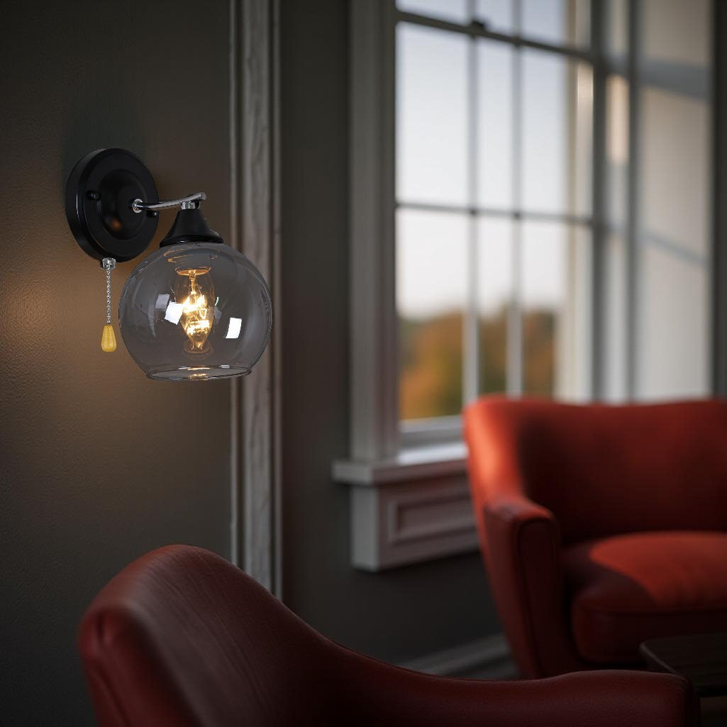 Бра Reluce 02288-0.2-01 BK+CH светильник настенный, 60 ВТ, Е27, металл, стекло, черный