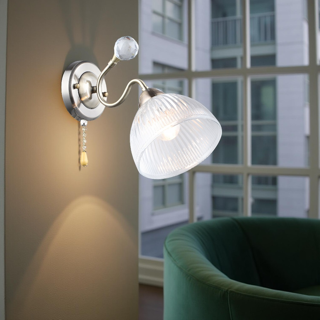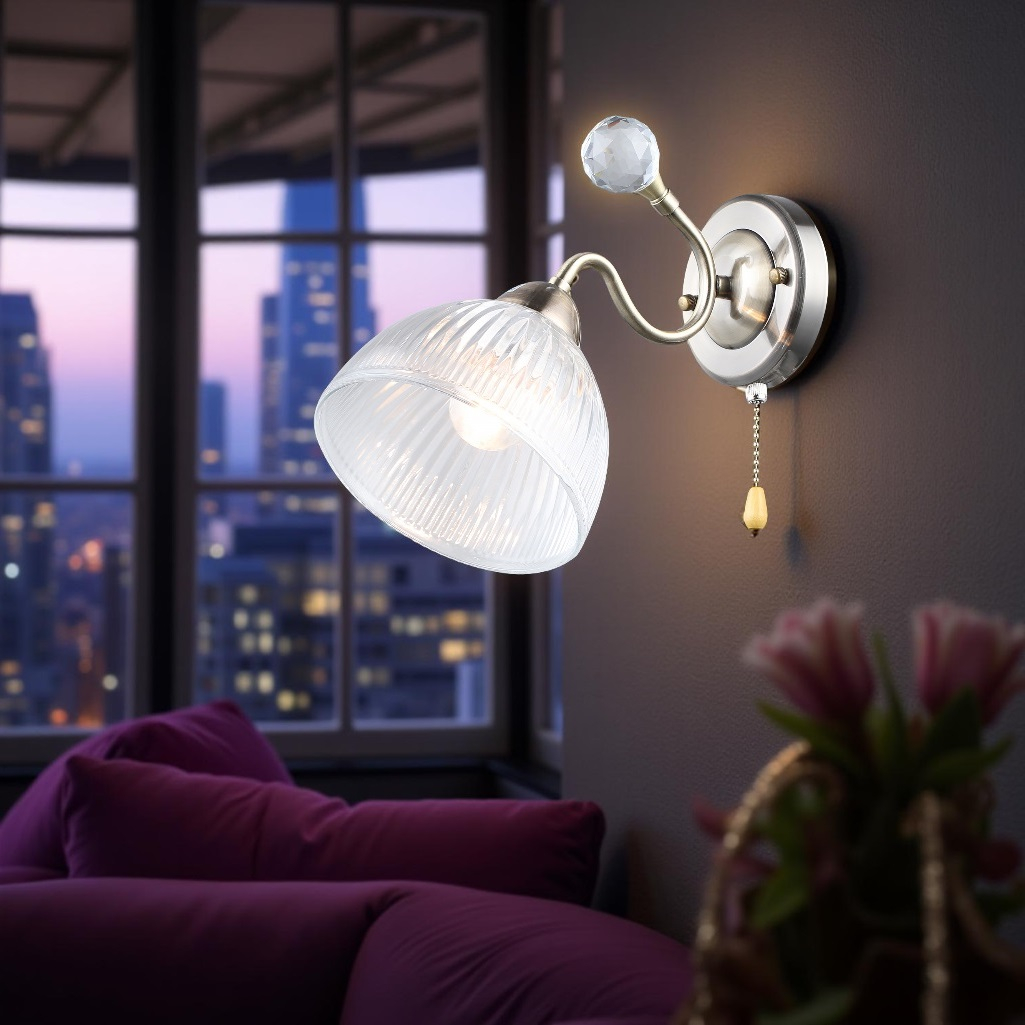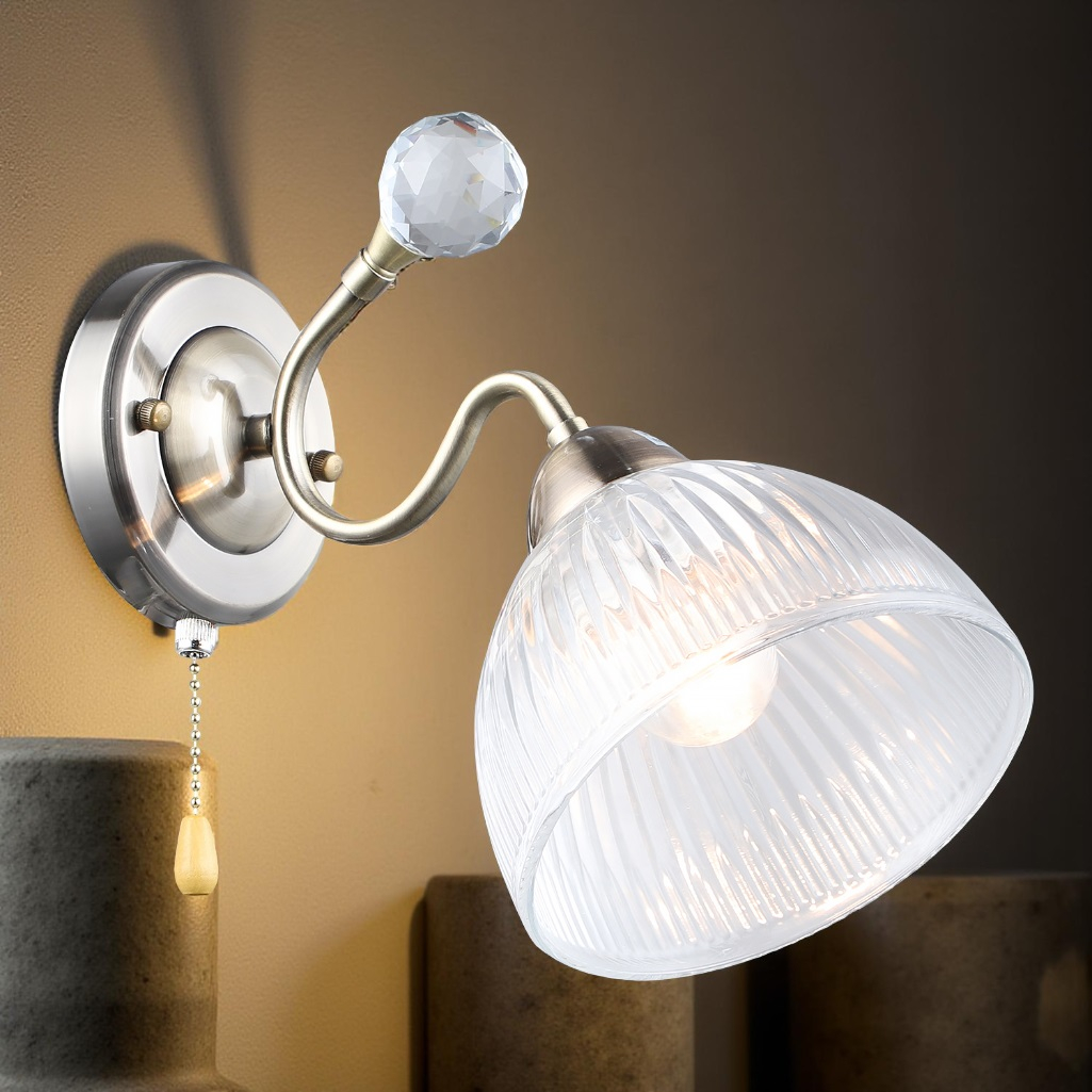 Бра Reluce 06142-0.2-01 АВ светильник настенный, 60 Вт, Е27, металл, стекло, античная бронза предназначен для освещения площади до 3 кв.м. Этот светильник станет достойным дополнением и приятным акцентом в интерьере гостиной, кабинета, спальни, гостевой комнаты. Прочное основание выполнено из металла в цвете античная бронза. Стеклянный плафон изготовлен из матового стекла и имеет вертикальный рисунок. Изящная ножка, держащая плафон, завершается стеклянным шаром, исполненным в гранях. Дополняет образ стильная цепочка с наконечником в виде капли. Светильник крепится на монтажную планку. Качественное исполнение обеспечивает длительную эксплуатацию. Уход за бра минимален. Изысканный стиль изделия позволяет встроить бра Reluce 06142-0.2-01 АВ в любую обстановку и удовлетворить запросы самых требовательных покупателей.