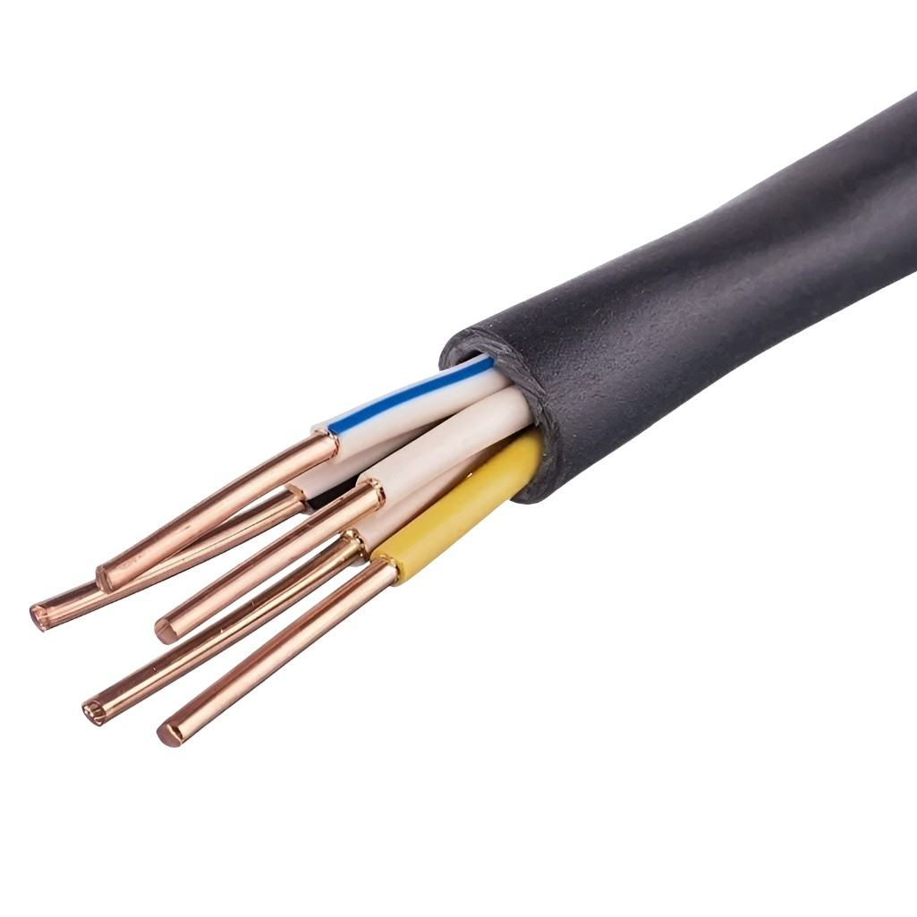 Кабель силовой медный ВВГ 5*6предназначен для передачи и распределения электроэнергии в неподвижных электротехнических установках с номинальным переменным напряжением до 1000 Вольт и частотой 50 Герц. Прокладывают ВВГ 5х6 без ограничения разности уровней по трассе прокладки, в том числе на вертикальных участках. Применяют кабели ВВГ в электрических сетях переменного напряжения с заземлённой или изолированной нейтралью, в которых продолжительность работы в режиме однофазного короткого замыкания на землю не превышает 8 ч, а общая продолжительность работы в режиме однофазного короткого замыкания на землю не превышает 125 ч за год. Кабелем ВВГ 5х6 прокладывают одиночные кабельные линии в кабельных сооружениях и помещениях, при групповой прокладке обязательно применение средств огнезащиты.