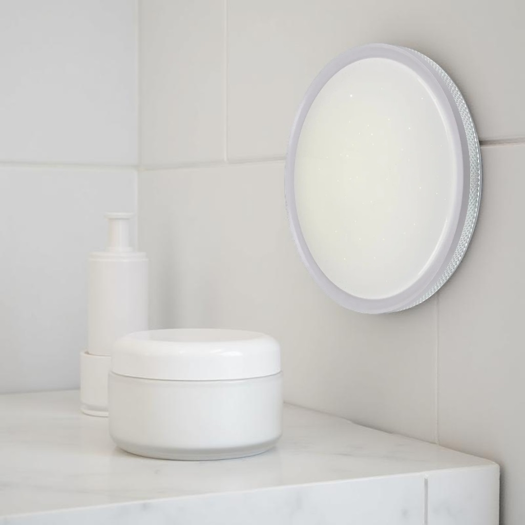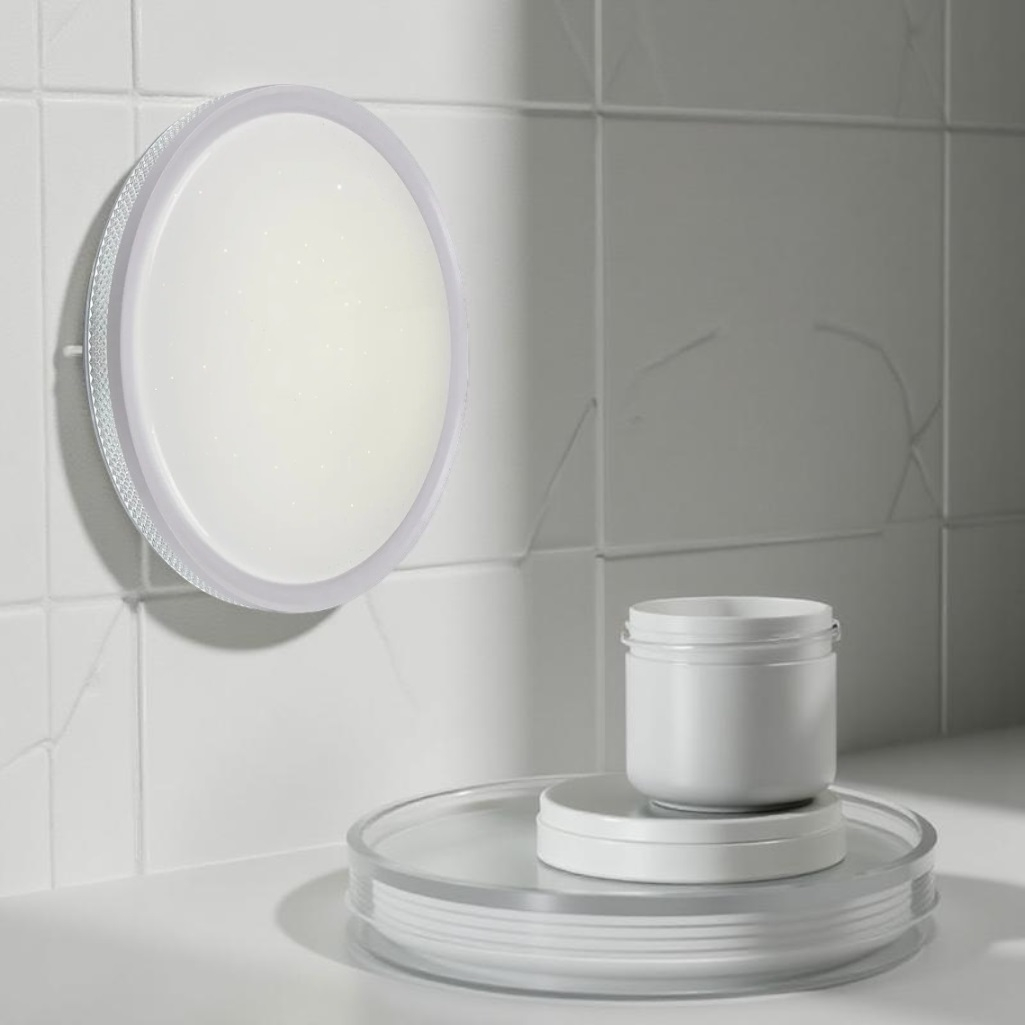 Светильник светодиодный Camelion LBS-7737 настенно-потолочный 14531, 80 Вт, 3000-6000K, пульт ДУ предназначен для внутреннего освещения общественных, бытовых и подсобных помещений площадью до 21 кв.м. Плафон выполнен из пластика и металла. Источник света - встроенные светодиоды. Диаметр светильника составляет 50 см, высота - 9 см. Эта модель способна стать центром внимания и одновременно гармонично дополнить практически любой интерьер. Светильник управляется при помощи пульта дистанционного управления на расстоянии до 5 метров. Регулировка яркости имеет 3 уровня. Светильник оснащен таймером и возможностью выставить ночной режим. 3 цвета сечения от 3000К до 6000К позволяет настроить свет от теплого желтовато-белого до холодного голубоватого. Гарантия на изделие составляет 2 года.