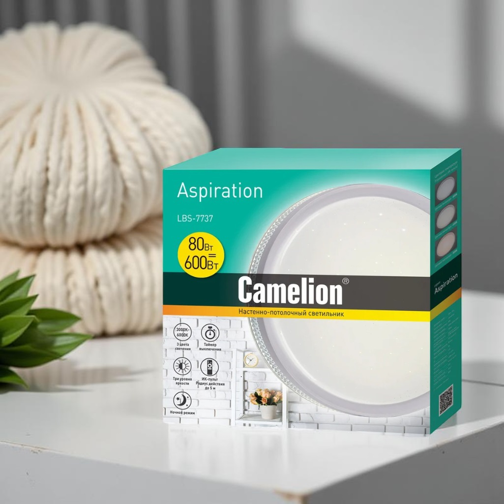 - Светильник настенно-потолочный Camelion LBS-7737 80 Вт 3000-6000K пульт ДУ
