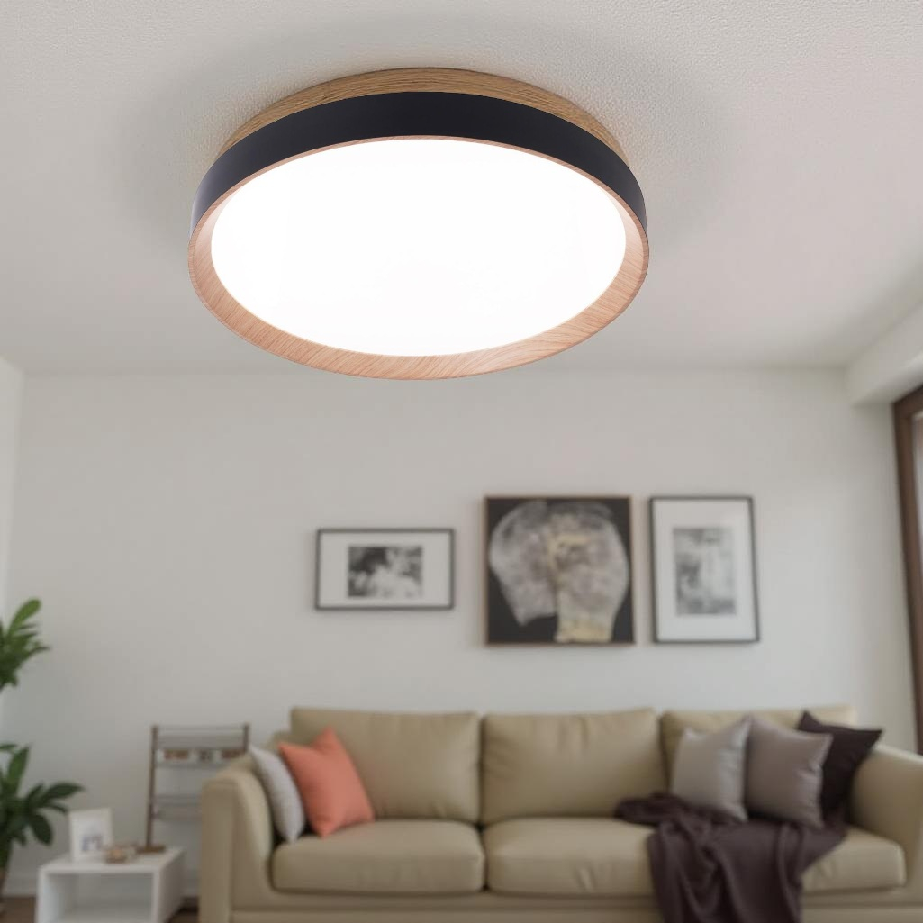 Светильник светодиодный AMBRELLA FZ1324 BK/LWD IP20, 41 Вт, дерево, пульт ДУ, 3000-6400K теплый-холодный свет выполнен в стиле современного минимализма. Корпус черного цвета изготовлен из пластика и дерева светлого тона. Благодаря встроенным светодиодам, необходимость в поиске или замене дополнительных ламп отпадает. С помощью инфракрасного пульта можно регулировать цветовую температуру, яркость, цвет освещения и включать ночной режим. Эта модель подходит для натяжных потолков и гармонично впишется в интерьер гостиной, спальни или детской комнаты. Температура света 3000-6400К дает освещение от теплого до холодного дневного света на выбор.