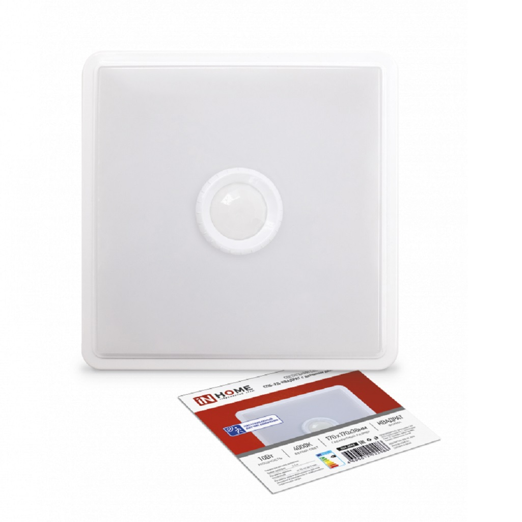 - Светильник светодиодный IN HOME СПБ-2Д-КВАДРАТ 10Вт 4000К 170мм с датчиком