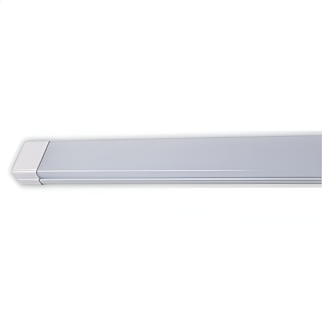 Светильник светодиодный LEEK LE LED ECO 02 LE061500-0070, 100 Вт, IP40, 6500К холодный свет подходит для освещения жилых, учебных, медицинских, спортивных, офисных, коммерческих и хозяйственных пространств. Он идеален для интерьерной подсветки, рабочих зон на кухне, витрин, оборудования, мебели, выставочных стендов и других объектов. Встроенные светодиоды быстро достигают полной мощности и не нагреваются. Корпус светильника Ultraflash выполнен из безопасных, нетоксичных и огнестойких материалов: металла, пластика, стекла и оргстекла. Устройство работает бесшумно и отличается минимальным энергопотреблением. Его легко и надежно закрепить на любой поверхности. Светильник предназначен для использования в сухих помещениях с нормальной влажностью воздуха. Цветовая температура составляет 6500К, что соответствует дневному белому свету, напоминающему яркое полуденное освещение в пасмурный день — это чистый белый свет без желтизны или синеватого оттенка, которые прекрасно настраивает на рабочий лад. Длина светильника 1200 мм.