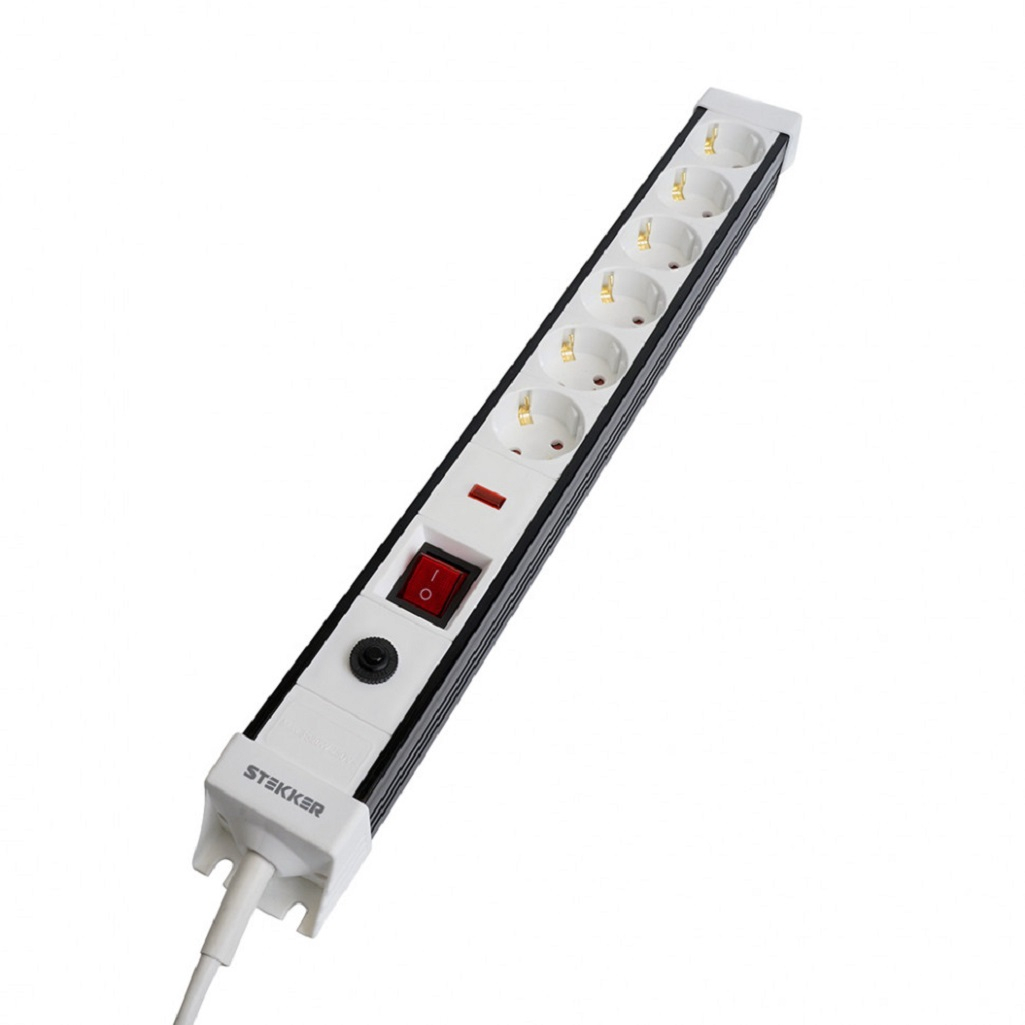 - Сетевой фильтр STEKKER 6-местный с/з 3x1мм2, 1,8 м серия Techno HM22-61-02 белый