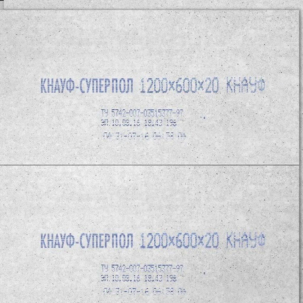 Описание листа Knauf, размер 20х600х1200 мм, элемент пола, влагостойкий
