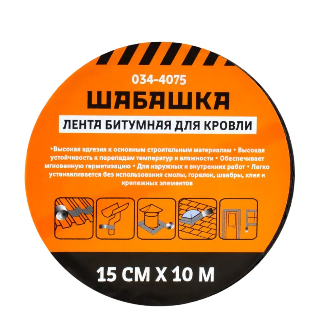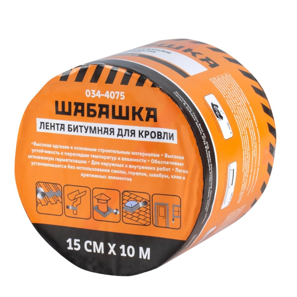 Лента битумная Шабашка 035-4075 для кровли, коричневая, ширина 15 см, длина 10 м - это самоклеящаяся герметизирующая кровельная лента на битумно-полимерной основе. Обладает высокой адгезией к большинству кровельных материалов на основе битума, фальцевым кровлям, натуральной и композитной черепице, а также другим основаниям из металла, древесины, пластиков, резины, камня, бетона, асбоцемента, кирпича, теплоизоляционных материалов.