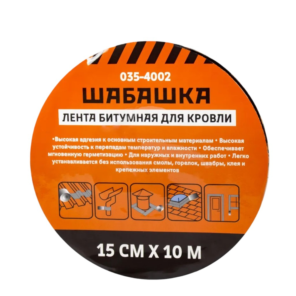 Лента битумная Шабашка 035-4002 для кровли, зеленый мох, ширина 15 см, длина 10 м - самоклеящаяся герметизирующая кровельная лента на битумно-полимерной основе. Обладает высокой адгезией к большинству кровельных материалов на основе битума, фальцевым кровлям, натуральной и композитной черепице, а также другим основаниям из металла, древесины, пластиков, резины, камня, бетона, асбоцемента, кирпича, теплоизоляционных материалов. С помощью ленты производится: ремонт и устройство кровли (конёк, ендовы, углы, проходные элементы); изоляция швов и стыков (между кровлей и дымоходом, трубами, стенами); защита металлических деталей (от коррозии и образования ржавчины); герметизация оконных и дверных проёмов (на скатах и фронтонах); шумоизоляция (снижение уровня посторонних шумов с крыши); гидроизоляция малых конструкций (фундамент, колодцы, трубы, железобетонные элементы).