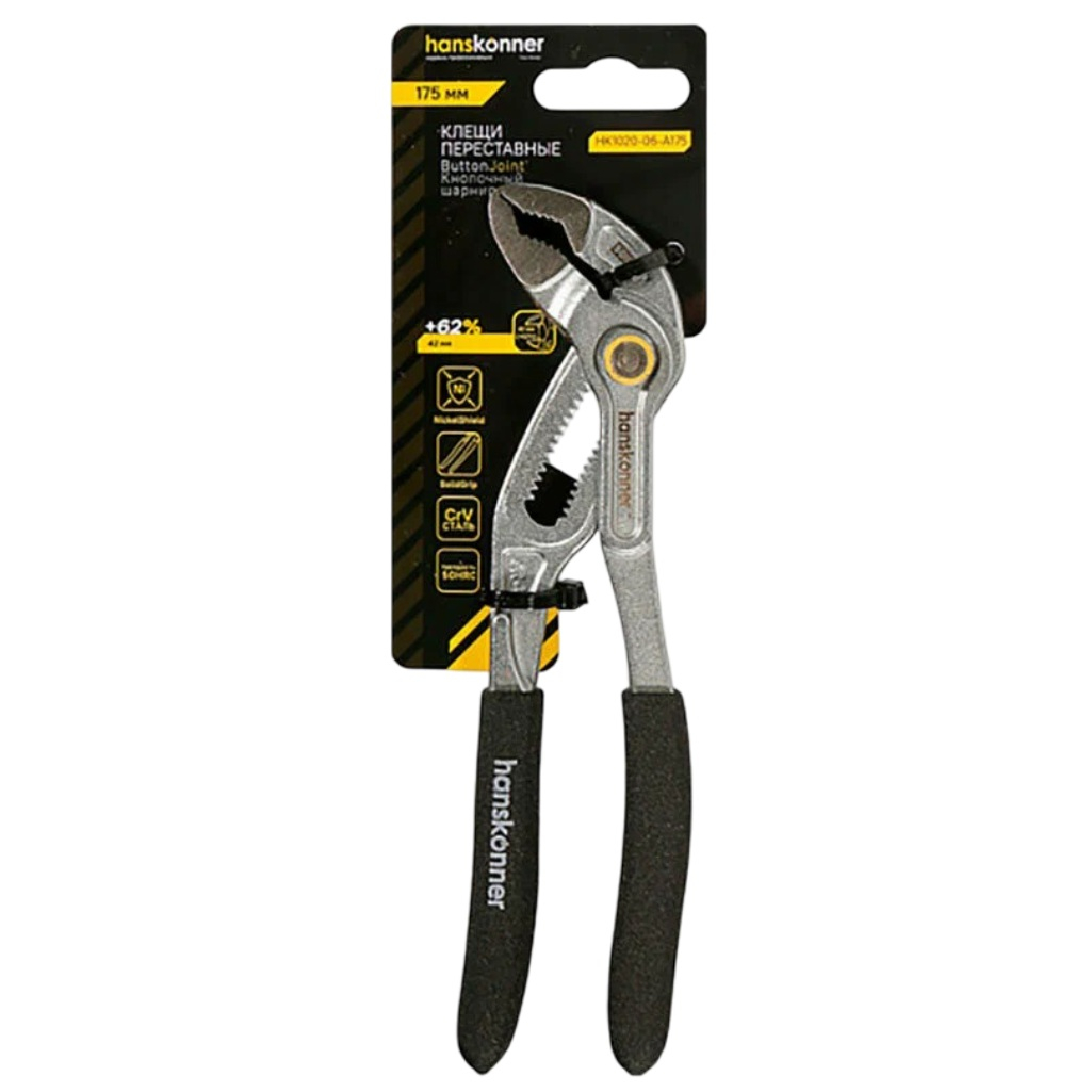 Клещи переставные Hanskonner HK1020-09-A175, кнопочный шарнир, длина 175 мм