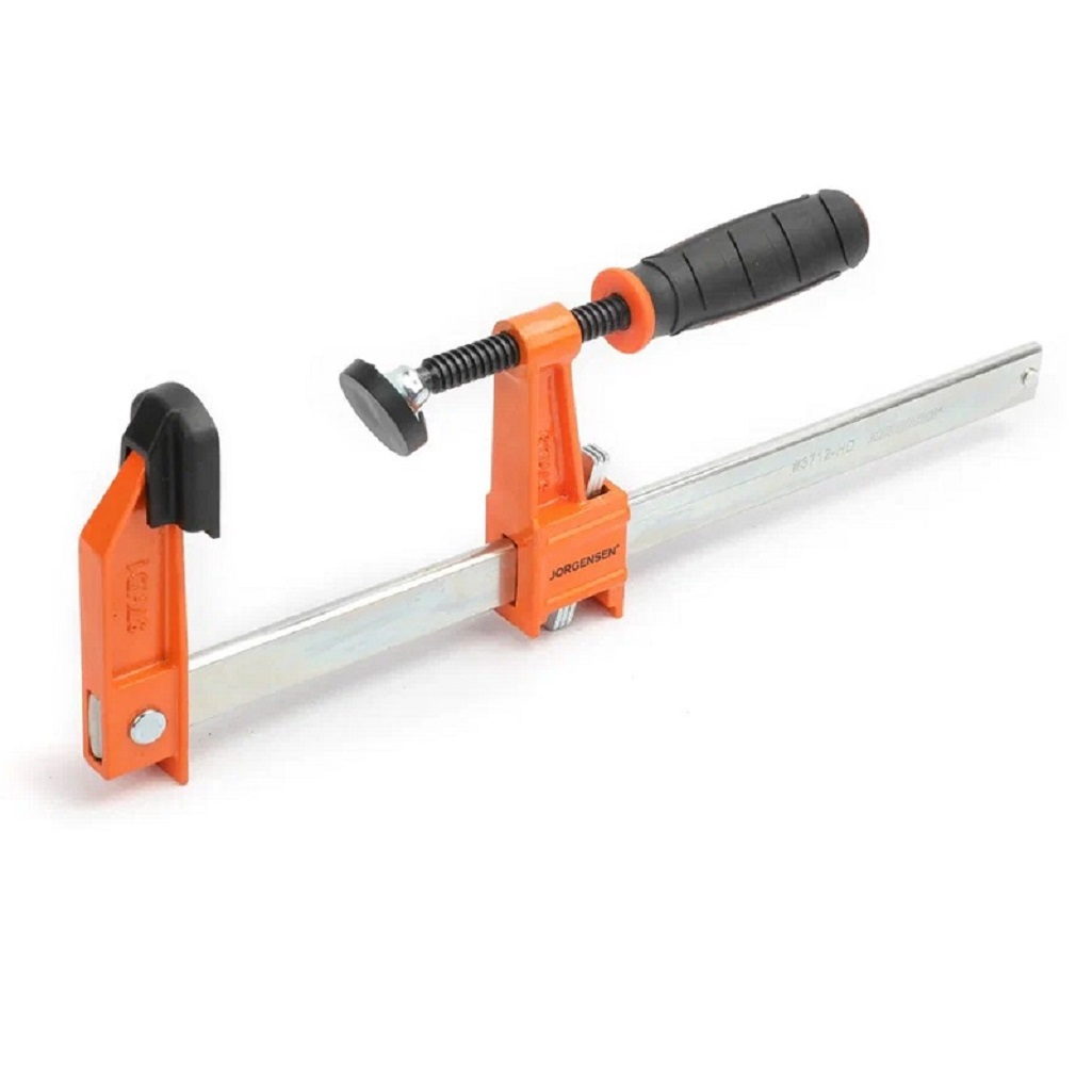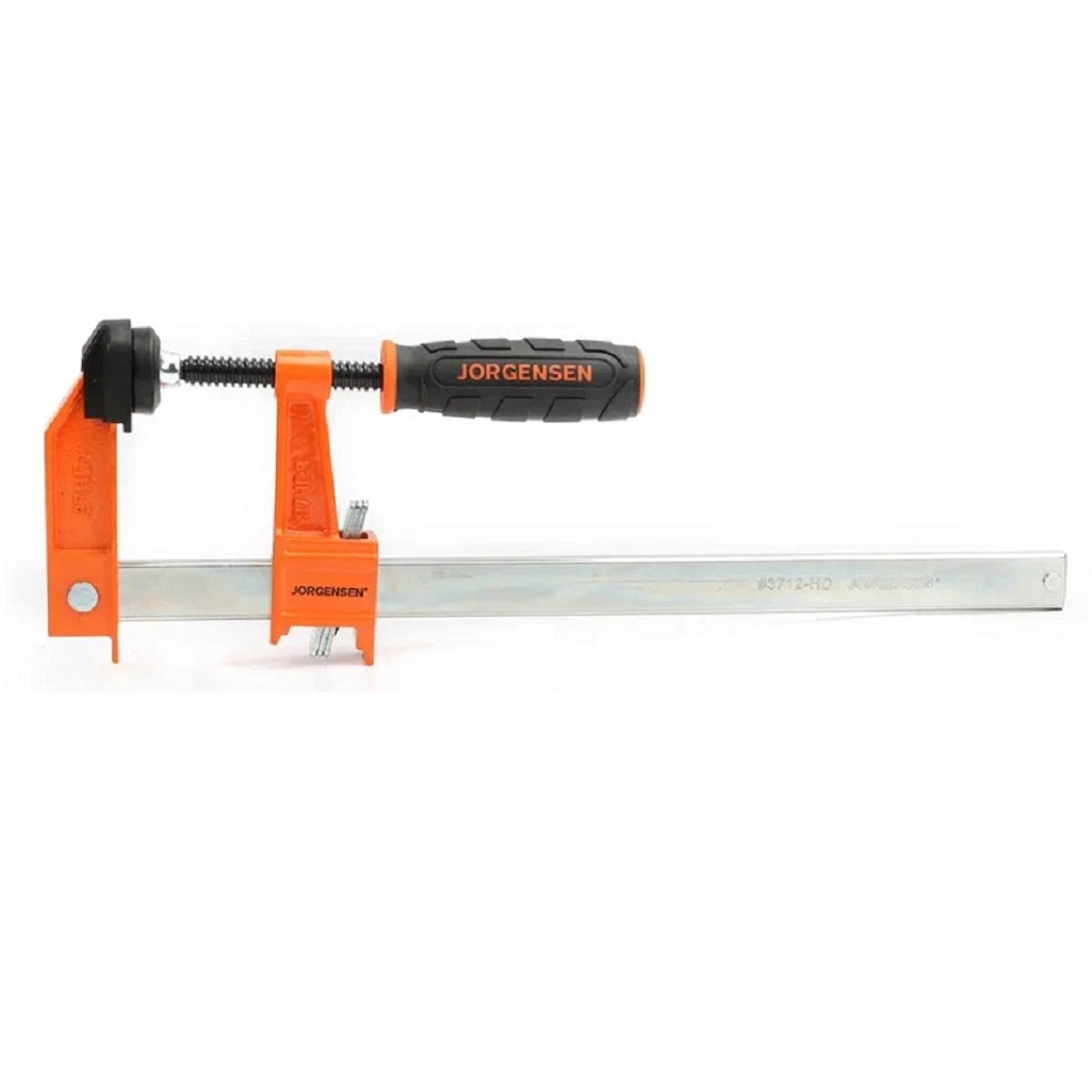 Струбцина F-образная Pony Jorgensen Medium-duty PJ3712, длина 304 мм предназначена для средних условий эксплуатации. Используется для плотного зажима деталей при склеивании или для фиксации их в процессе выполнения столярных, слесарных и прочих работ. Струбцина очень прочная. Чугунные стационарные и раздвижные головки с покрытием из оранжевого порошка соединены с высокоуглеродистой стальной направляющей, устойчивой к ржавчине. Направляющая обладает выдающейся прочностью на растяжение - 6000 килограмм на квадратный сантиметр. Быстродействующая скользящая головка оснащена крестообразной резьбой для крепления винта из холоднотянутой стали. Рукоятка и поворотная опора обеспечивают удобство использования. Оригинальная многотарельчатая муфта надёжно фиксирует головку на любом участке направляющей.