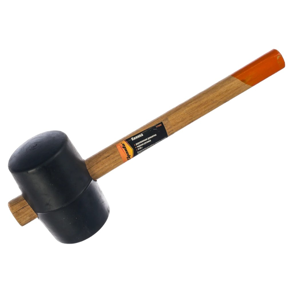 Киянка резиновая Sparta 111605, деревянная рукоятка, 910 гр, черная - это универсальный инструмент, который применяется для выравнивания и укладки напольных покрытий, таких как плитка, а также для рихтовки металлических изделий и сборки мебели. Она состоит из двух основных компонентов: круглого бойка и деревянной рукоятки. Боёк изготовлен из прочной чёрной резины, которая бережно относится к обрабатываемому материалу. Рукоятка покрыта бесцветным лаком, предотвращающим её рассыхание. Для обеспечения надёжности боёк закреплён на рукоятке с помощью протяга, что предотвращает его отсоединение во время работы. После каждого использования рекомендуется тщательно вытирать резиновую поверхность насухо, чтобы удалить пыль и влагу. Это предотвращает образование плесени и продлевает срок службы инструмента.