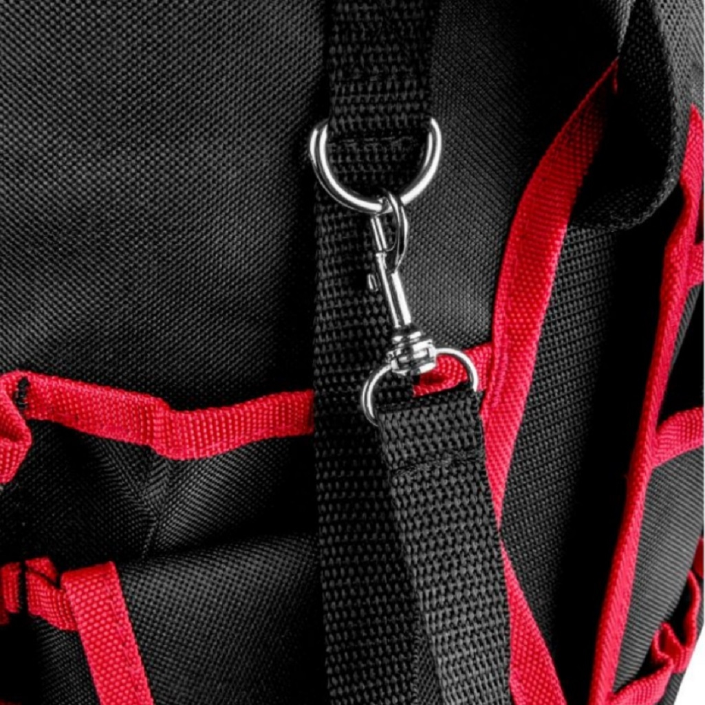 Сумка для инструмента WORTEX WB 3037 1323694, оксфорд, 300x300х370 мм, вес до 25 кг идеально подходит как для профессионалов, так и для домашних мастеров, которым необходима надежная и вместительная тара для инструментов. Изготовленная из прочного материала оксфорд, она имеет размеры 370×300×300 мм и способна выдерживать максимальную нагрузку до 25 кг, что позволяет удобно переносить большие и тяжелые наборы инструментов. Прочный материал Oxford обеспечивает долговечность изделия и надежную защиту инструментов от внешних воздействий. Большая вместимость, включающая 58 отделений и карманов, позволяет эффективно организовать инструменты различных размеров. Максимальная нагрузка до 25 кг позволяет переносить даже самые тяжелые и объемные наборы инструментов. Удобные ручки и плечевой ремень способствуют комфортному переносу сумки. Прорезиненные ножки на дне предотвращают скольжение и защищают от влаги и грязи. Складная конструкция облегчает хранение и транспортировку сумки.