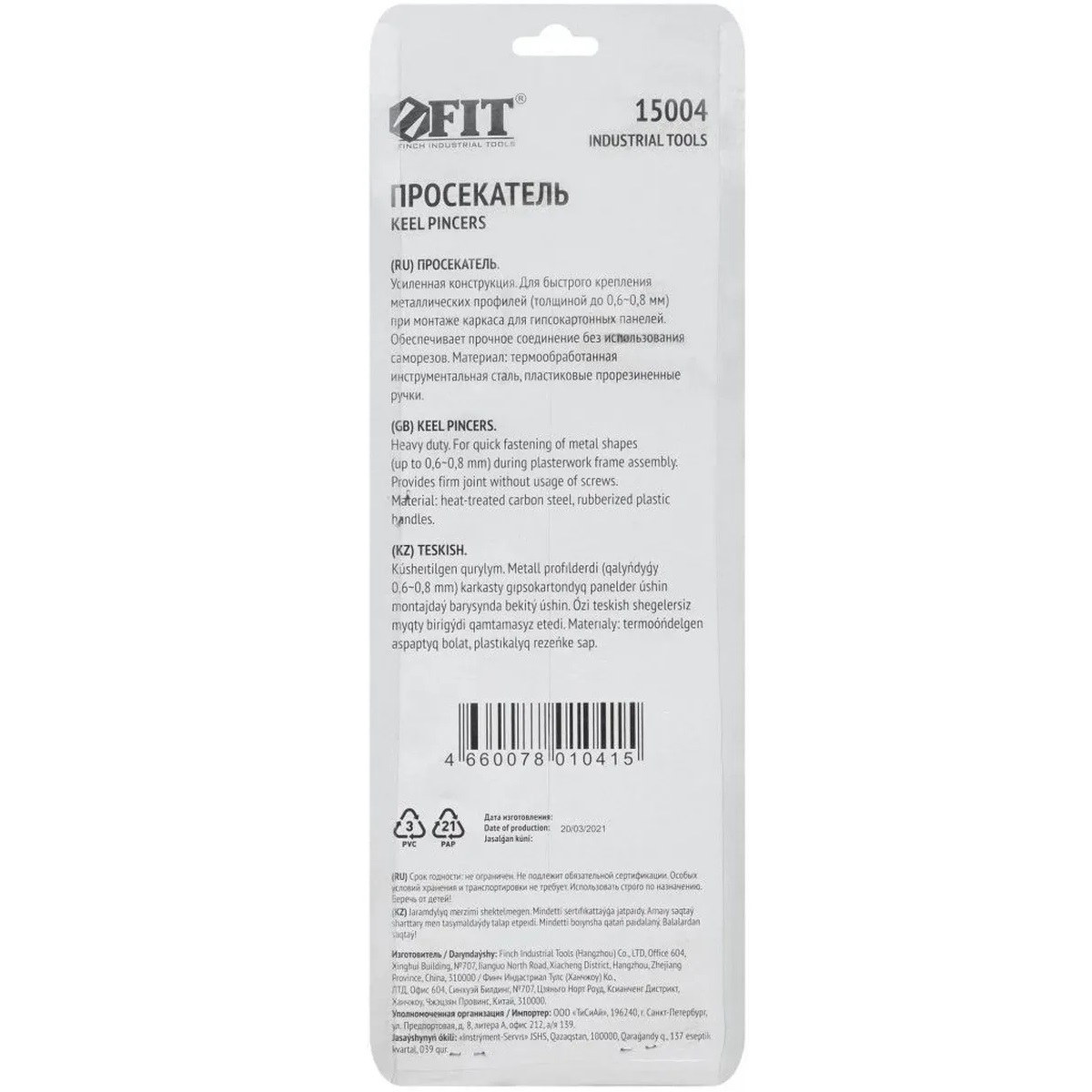 Просекатель усиленный FIT 15004 для металлического профиля под гипсокартон - это просекатель из инструментальной стали с пластиковыми накладками на ручках с обрезиненными вставками, который предназначен для соединения стальных каркасных конструкций толщиной до 0.6-0.8 мм, применяемых при монтаже гипсокартонных панелей для возведения перегородок или монтажа подвесного потолка. Обеспечивает прочное соединение без использования саморезов. Инструментом удобно работать самостоятельно, без посторонней помощи. Компактный размер инструмента обеспечивает комфортную работу в стесненных и труднодоступных местах.