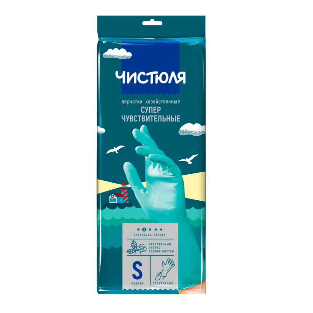 Перчатки хозяйственные Чистюля, суперчувствительные, латекс, размер S
