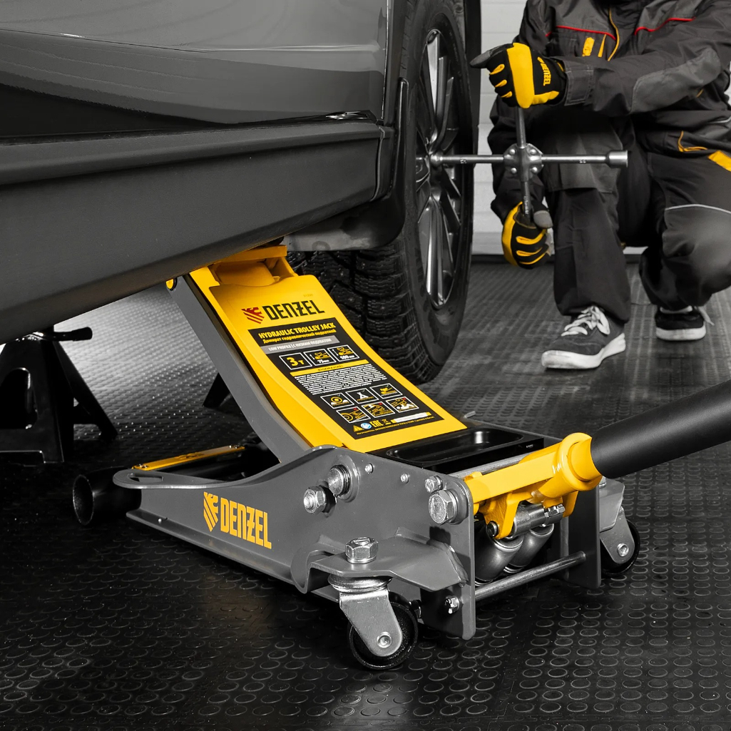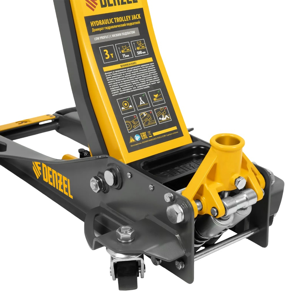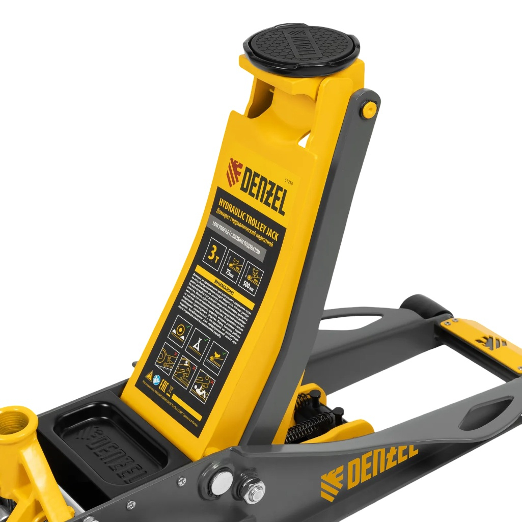 Домкрат подкатной Denzel 51250 гидравлический 3 т, профессиональный, высота 75-500 мм
