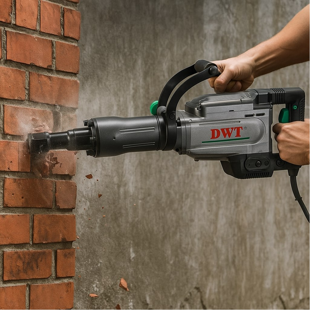 Оптимальные размеры и масса молотка обеспечивают комфорт при длительной работе, снижая физическую нагрузку на оператора. Удобная рукоятка с антивибрационной системой снижает усталость руки, улучшая общее самочувствие оператора и продолжительность рабочего дня. Низкий уровень шума обеспечивает комфортные условия труда и минимальный дискомфорт окружающим людям. Надёжная конструкция корпуса, выполненная из ударостойких материалов, повышает эксплуатационный ресурс и уменьшает частоту поломок. Отбойный молоток DWT может использоваться для разрушения бетона, асфальта, кирпича и других тяжелых материалов, применяемых в строительстве и реконструкции зданий.