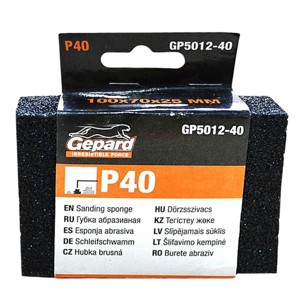 Губка абразивная Gepard GP5012-40 P40, шлифовальная, размер 70х100 мм, Р40, ручное шлифование