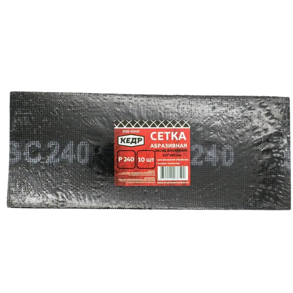Сетка абразивная Кедр 27503, размер 115х280 мм, Р240, для шлифмашин, в упаковке 10 шт