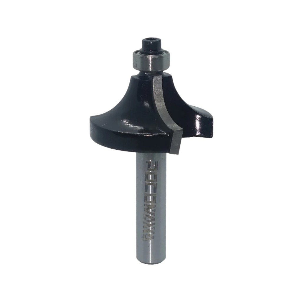 Фреза концевая Росомаха, d8 мм, D28 мм, H12 мм, R8 мм, кромочная с нижним подшипником, 801902 — это профессиональный инструмент для создания декоративной фигурной кромки (калевки) на деревянных деталях с помощью ручного фрезера или станка.