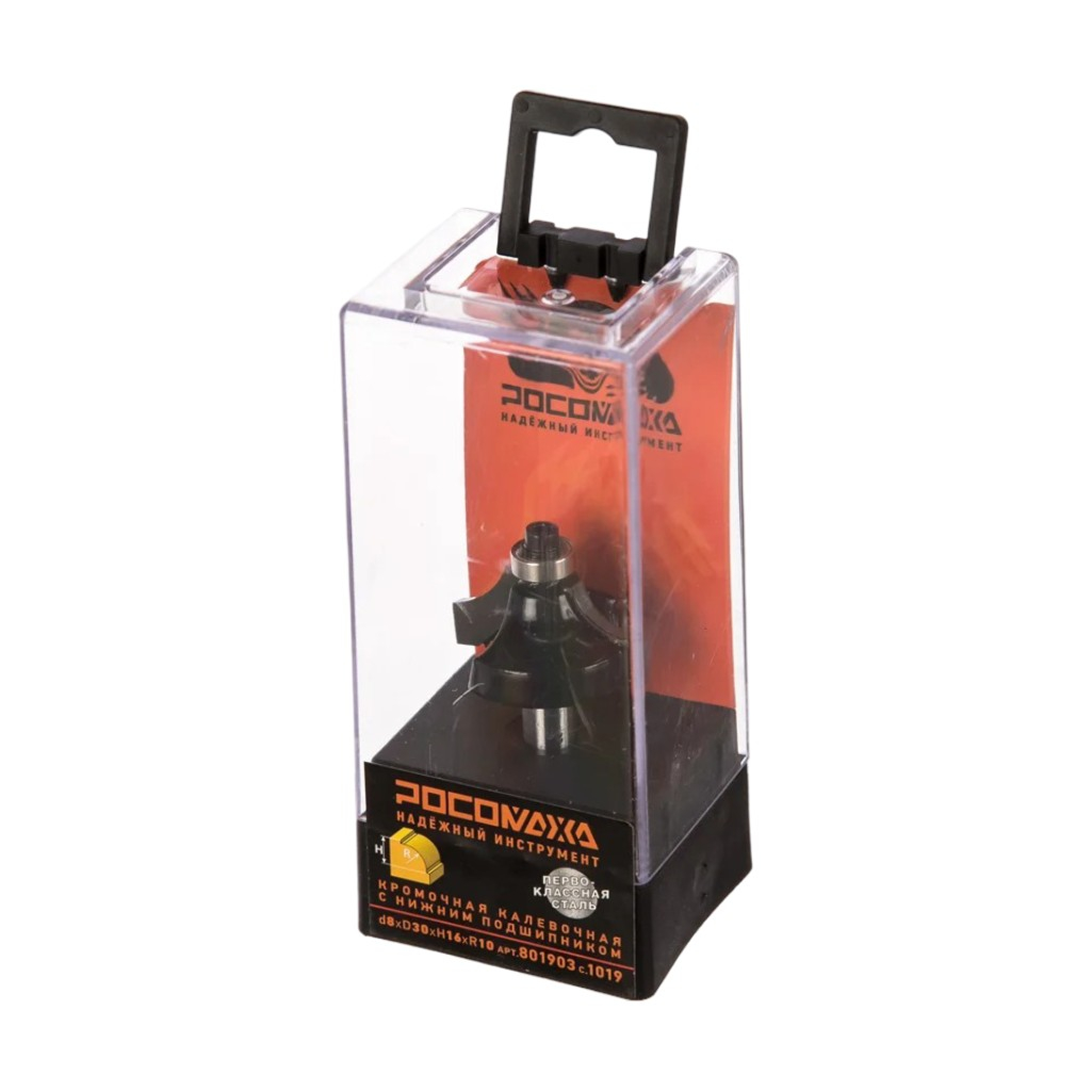 Описание фрезы кромочной калевочной Росомаха d8 мм, D30 мм, H16 мм, R10, с нижним подшипником 801903