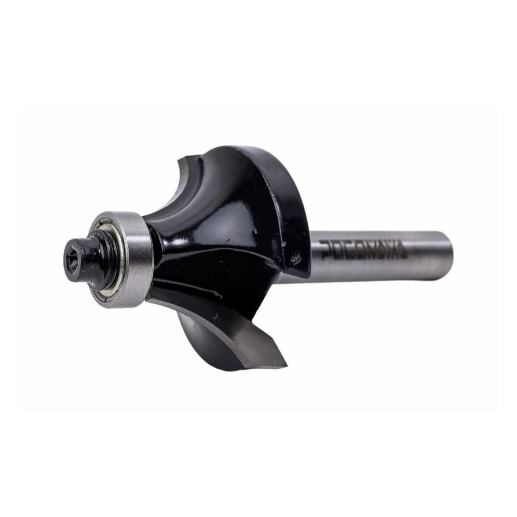 Фреза концевая Росомаха, d8 мм, D35 мм, H18 мм, R12 мм, кромочная, 801709 — это инструмент для ручных фрезеров и фрезерных станков, предназначенный для создания декоративной фигурной кромки (калевки) на деревянных деталях.