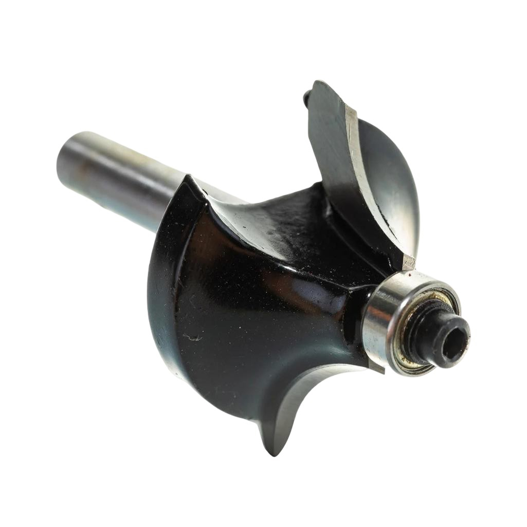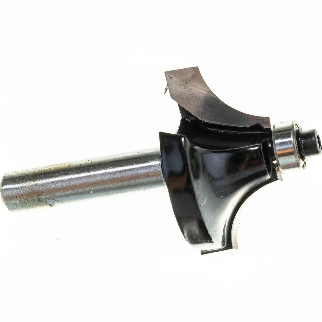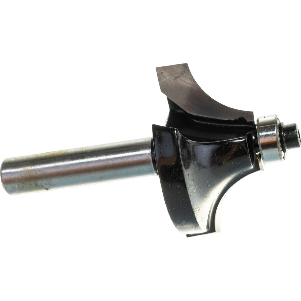 Фреза концевая Росомаха, d8 мм, D35 мм, H18 мм, R12 мм, кромочная с нижним подшипником 801904 — это инструмент для ручных фрезеров и фрезерных станков, предназначенный для создания декоративной фигурной кромки (калевки) на деревянных деталях.