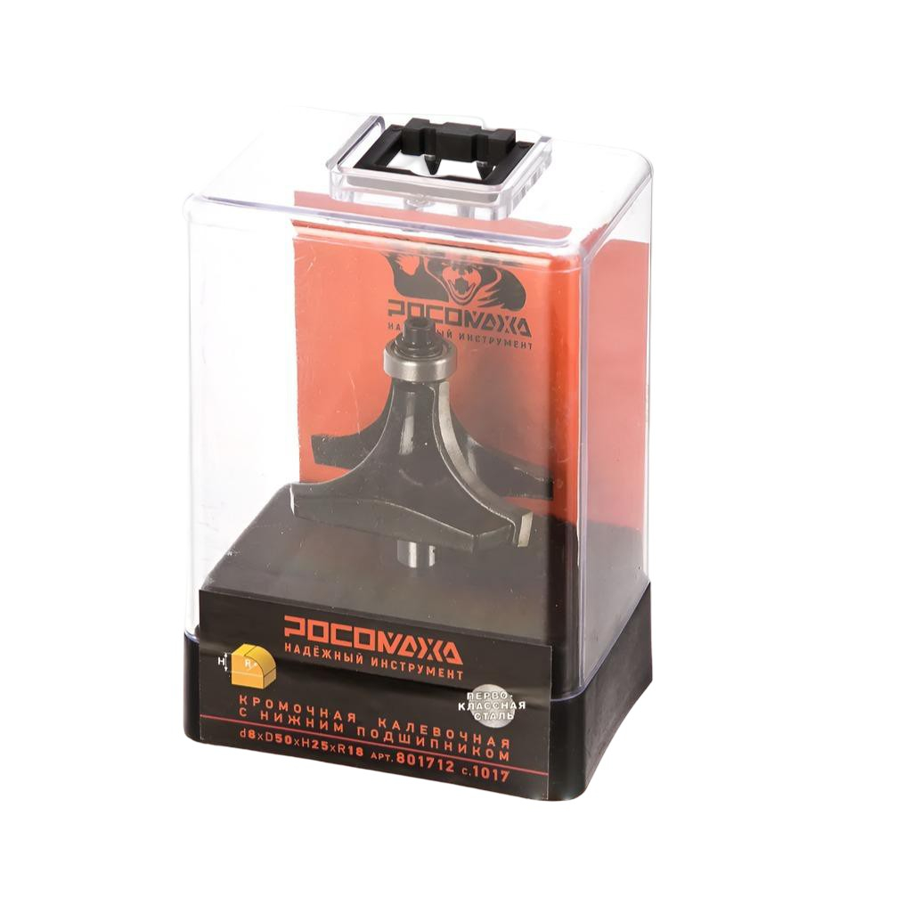 Фреза концевая Росомаха калевочная с нижним подшипником d8 мм, D50 мм, H25 мм, R18 мм, кромочная 801712 в Москве