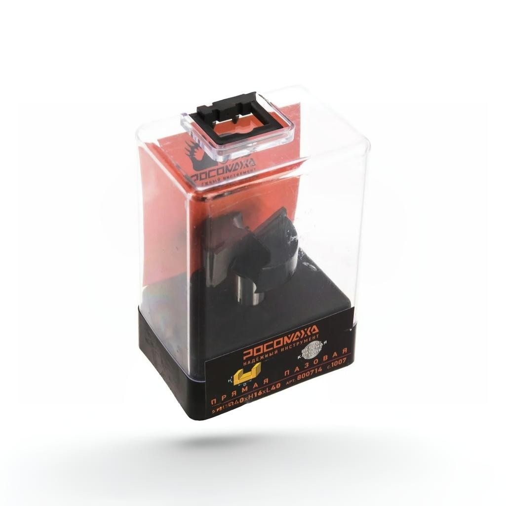 Фреза концевая Росомаха d12 мм, D40 мм, H16 мм, L40 мм, прямая пазовая, 800714 — это инструмент для ручных фрезеров и станков, предназначенный для фрезерования широких пазов, выборки материала и создания соединений в деревянных заготовках.