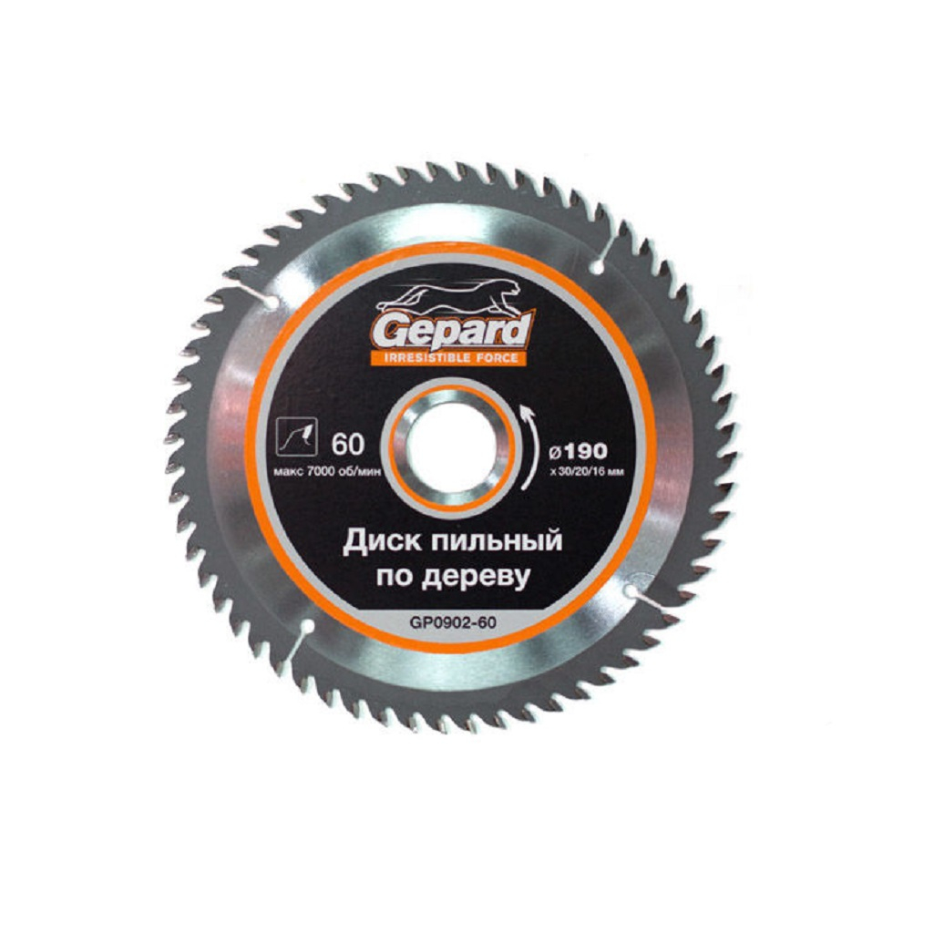 Диск пильный по дереву Gepard GP-0902-60, 190х30/20/16 мм, 60 зубьев