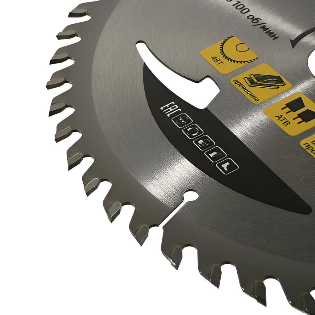 Зубья диска выполнены из твёрдого мелкозернистого сплава К10, что в 2.5 раза увеличивает его износостойкость. Это позволяет использовать диск в течение всего рабочего дня без перегрева. Тело диска изготовлено из прочной стали марки 65Mn, которая гарантирует его долговечность. Характеристики диска: диаметр 165 мм, толщина тела 1 мм, толщина реза 1.6 мм, количество зубьев 48.