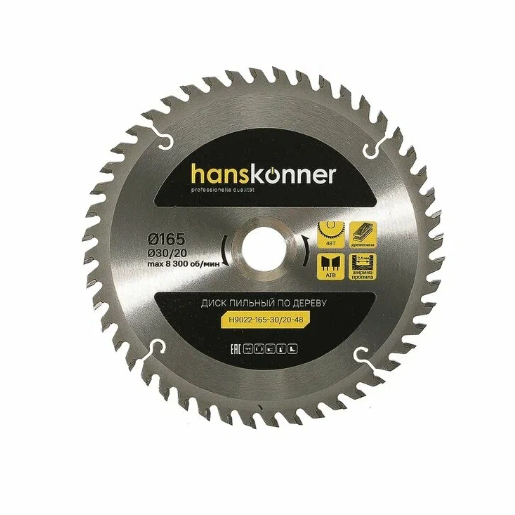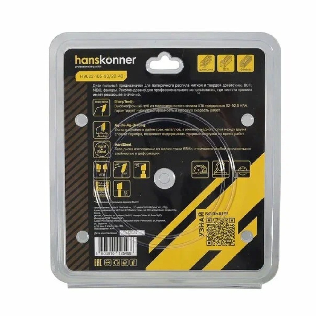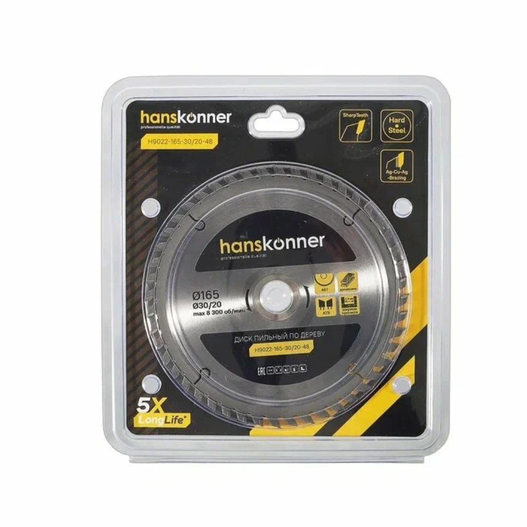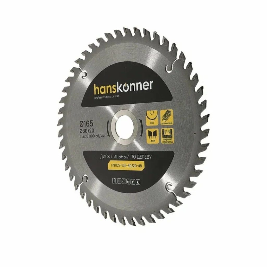 Описание диска по дереву Hanskonner H9022-165-30/20-48T, 165х30/20 мм, 48 зубьев