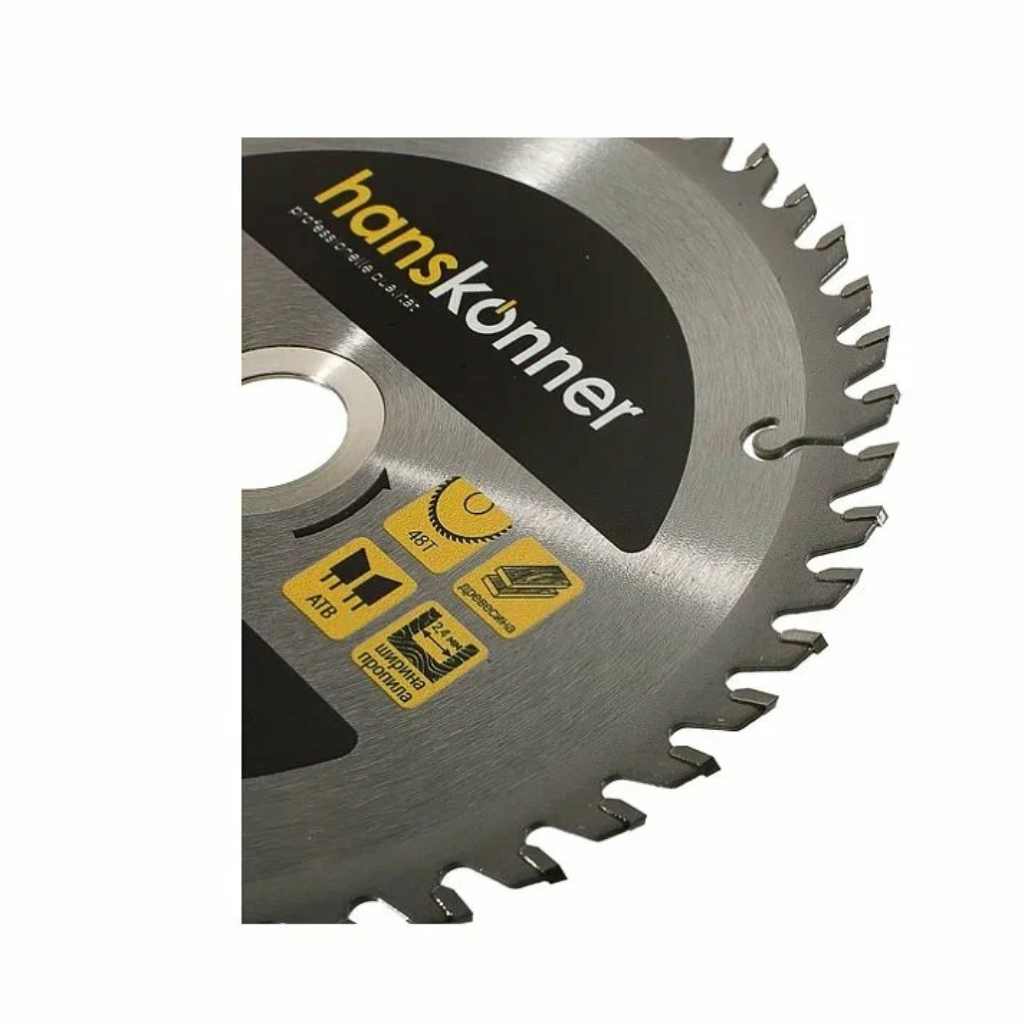 Диск пильный по дереву Hanskonner H9022-165-30/20-48T, 165х30/20 мм, 48 зубьев предназначен для поперечного пиления древесины различных типов, включая мягкие и твердые породы, ДСП, МДФ и фанеру. Благодаря твердосплавным напайкам из К10 и увеличению размера зуба в три раза, ресурс диска становится выше в три раза. Сварка с использованием серебра предотвращает выпадение зубьев при ударных нагрузках, что повышает надежность инструмента. Скорость работы увеличивается на 30%. Корпус диска изготовлен из стали марки 65Mn, что позволяет работать без перегрева в течение всего рабочего дня. Диск обеспечивает чистый рез. Диаметр 165 мм, толщина диска составляет 1.6 мм, ширина пропила - 2.4 мм, количество зубьев - 48 шт. Максимальная скорость вращения диска 8300 об/мин.