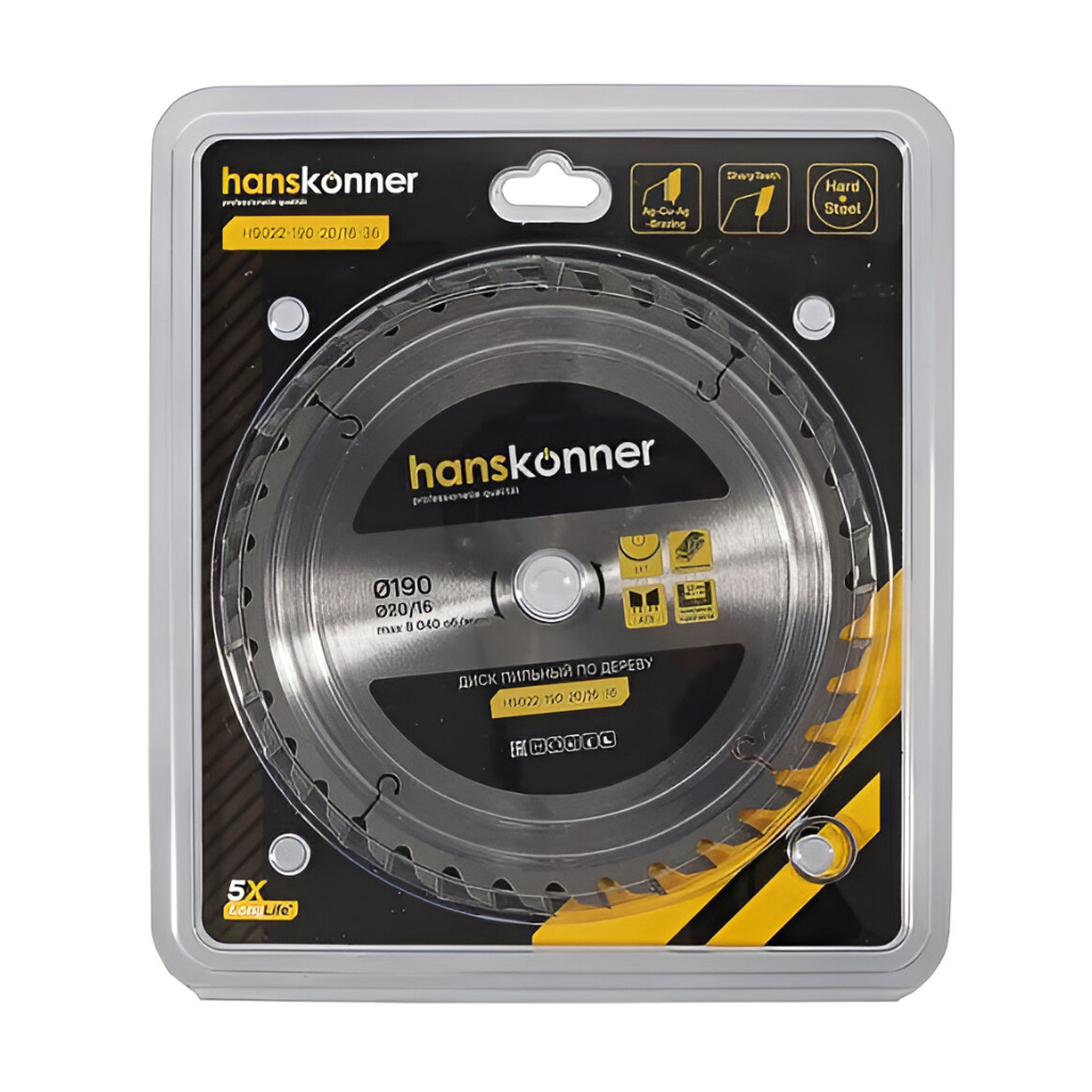 - Диск пильный Hanskonner H9022-190-20/16-36T