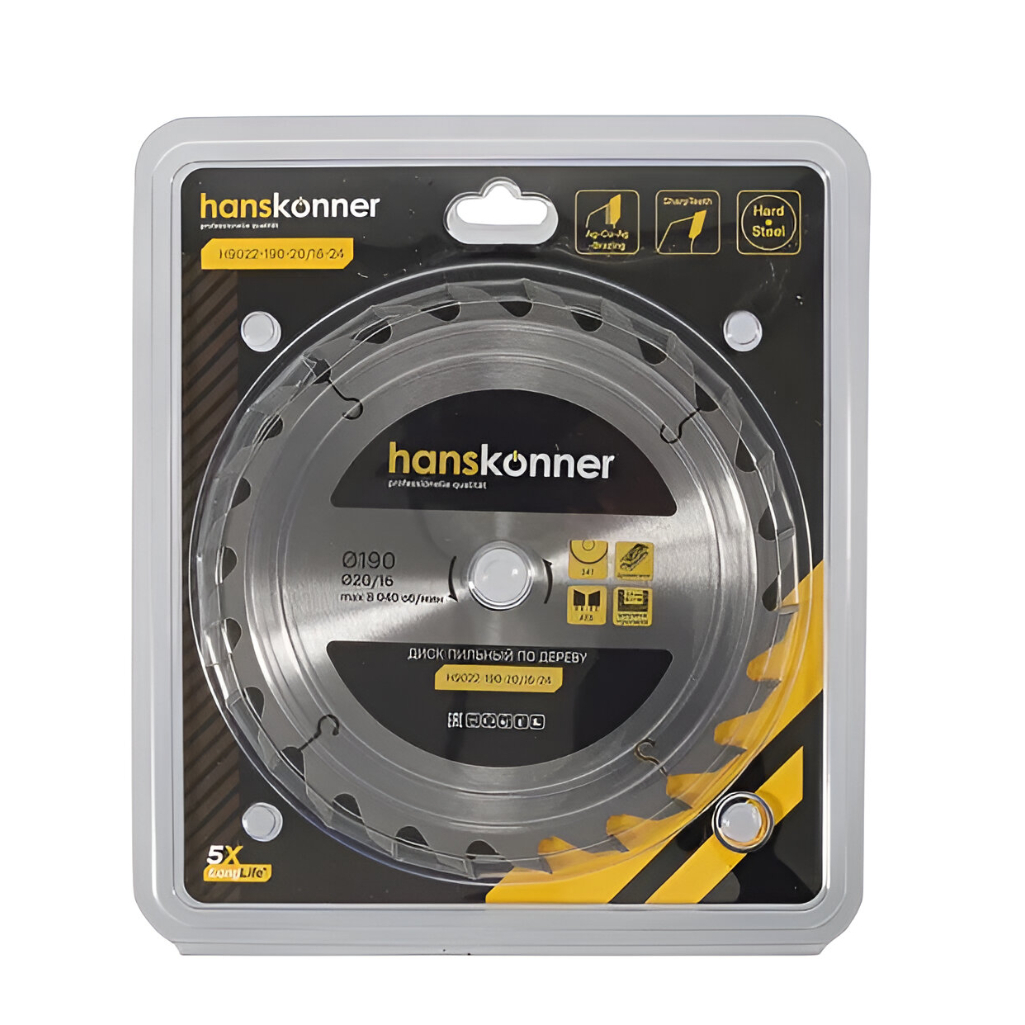 Диск пильный по дереву Hanskonner H9025-190-20/16-24T, 190х20/16, 24 зубья