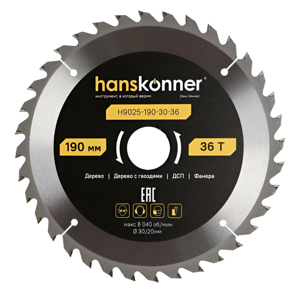 - Диск пильный Hanskonner H9025-190-30/20-36T