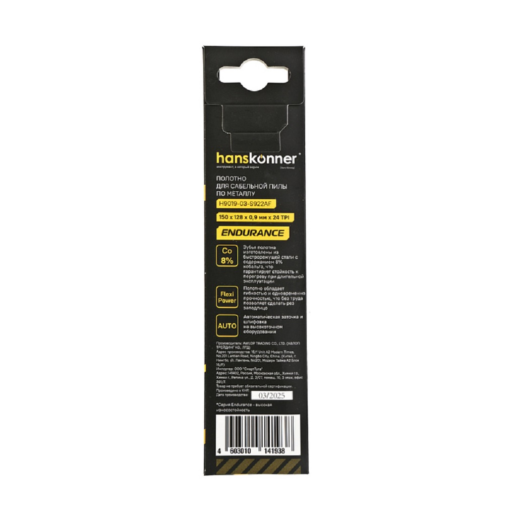 Полотно для сабельной пилы Hanskonner H9019-03-S922AF по металлу, длина 150 мм